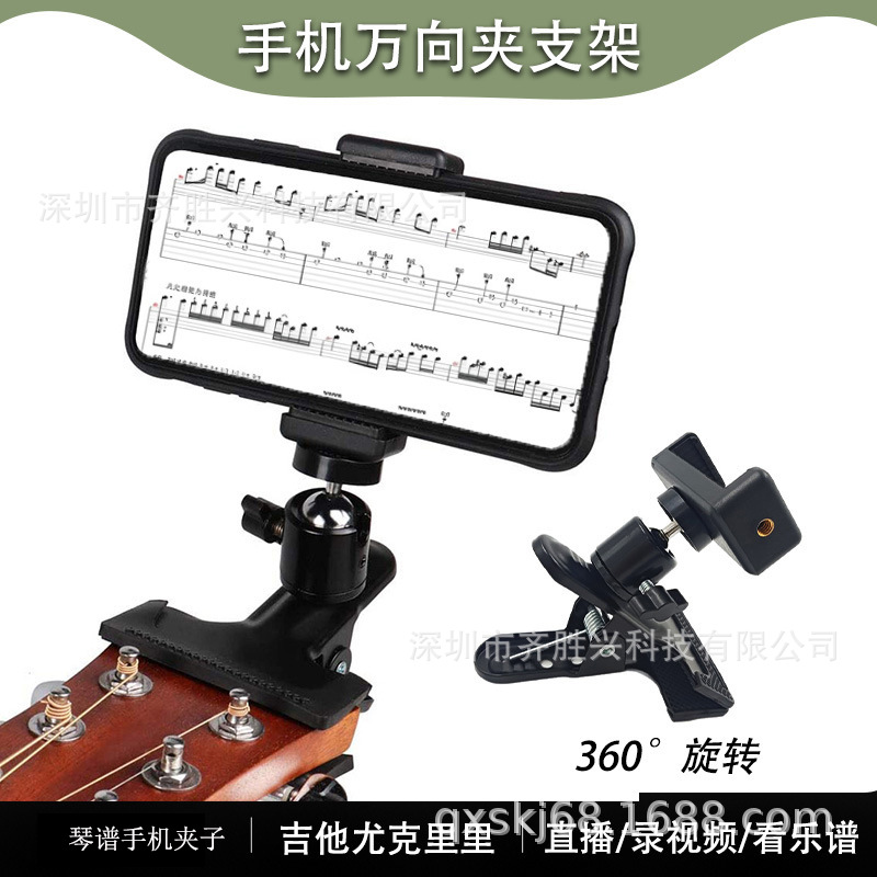 Держатель для мобильного телефона для гитары, поворотный, для записи живого видео, для укулеле, зажим для нот