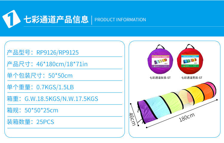 Игрушка для раннего детского развития Спот Радужный цветной тоннель для ползания Портативный детский палаточный канал