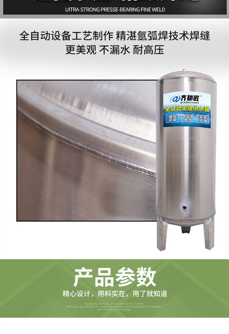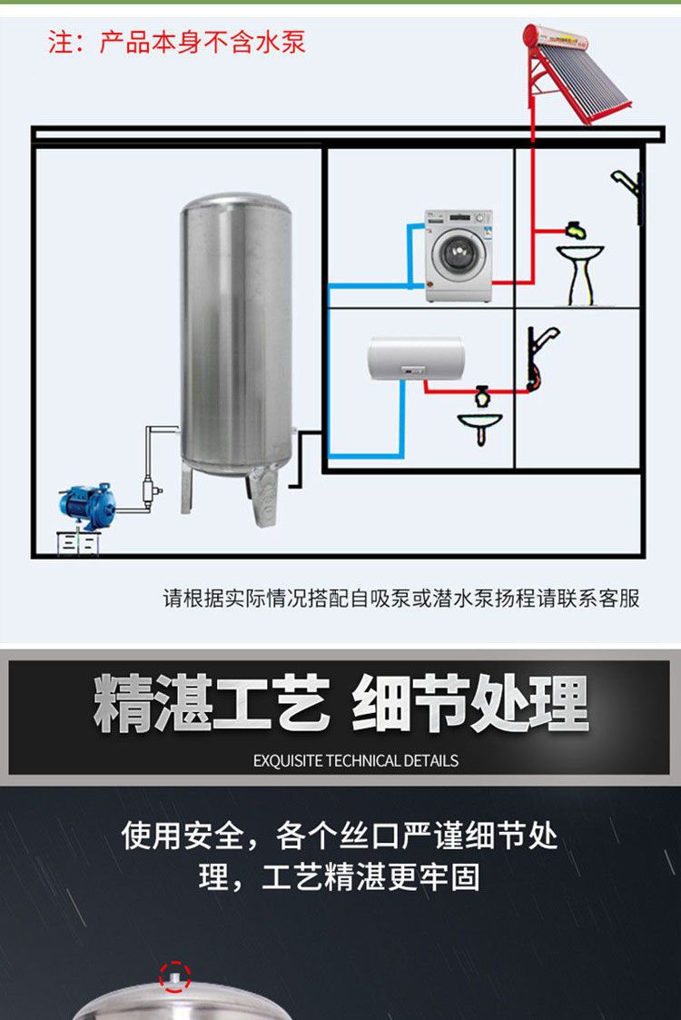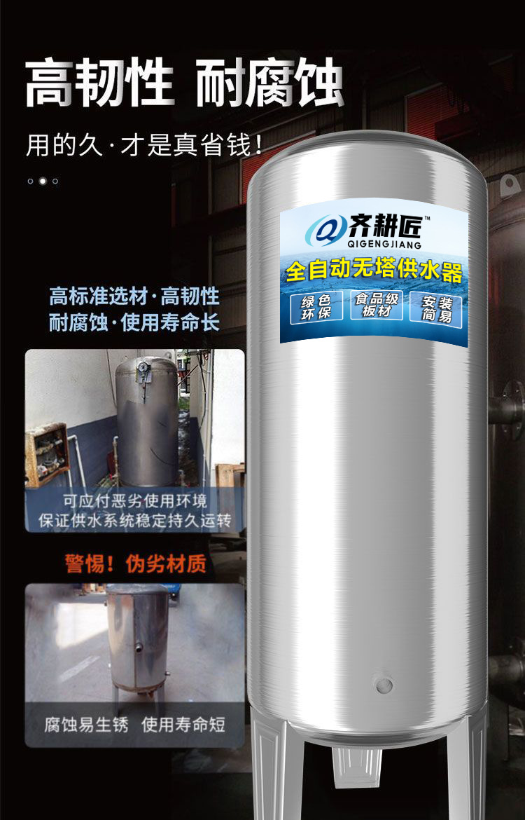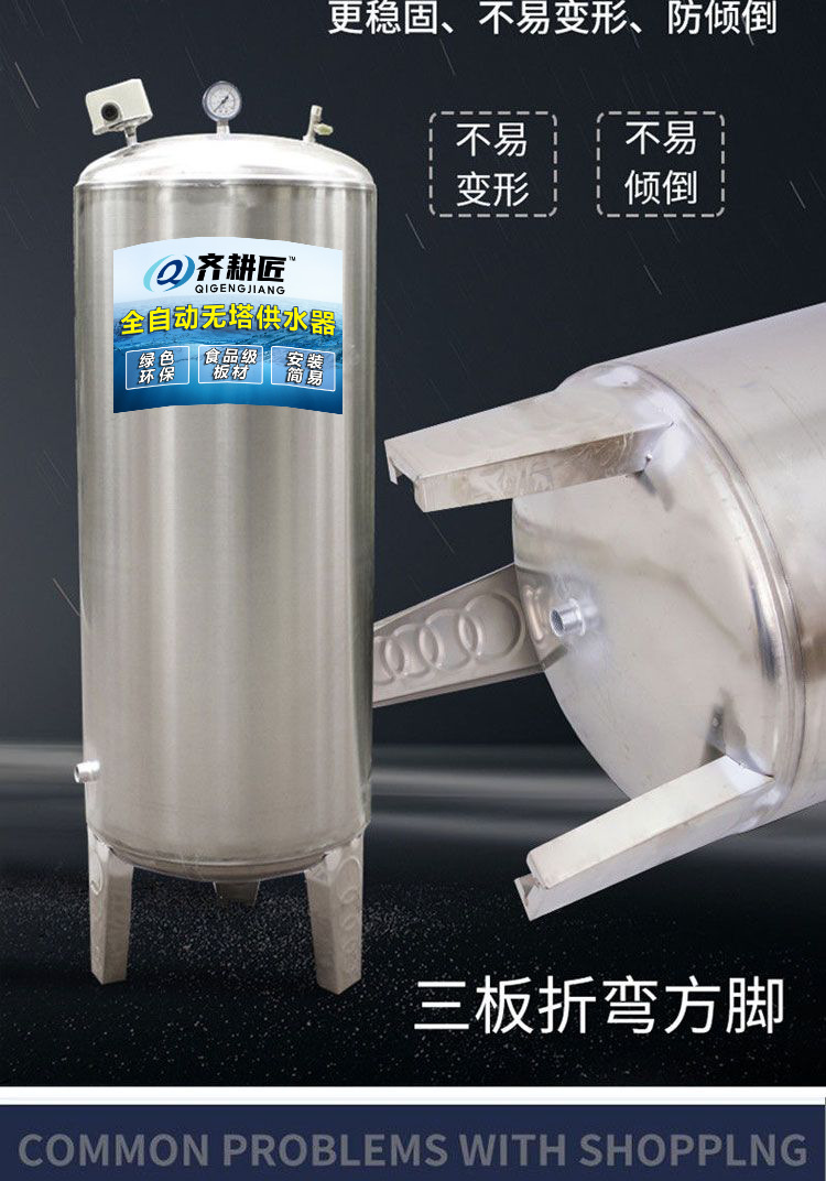 Нержавеющий бак под давлением для домашнего водоснабжения без башни, насос для повышения давления, полностью автоматический водонакопитель
