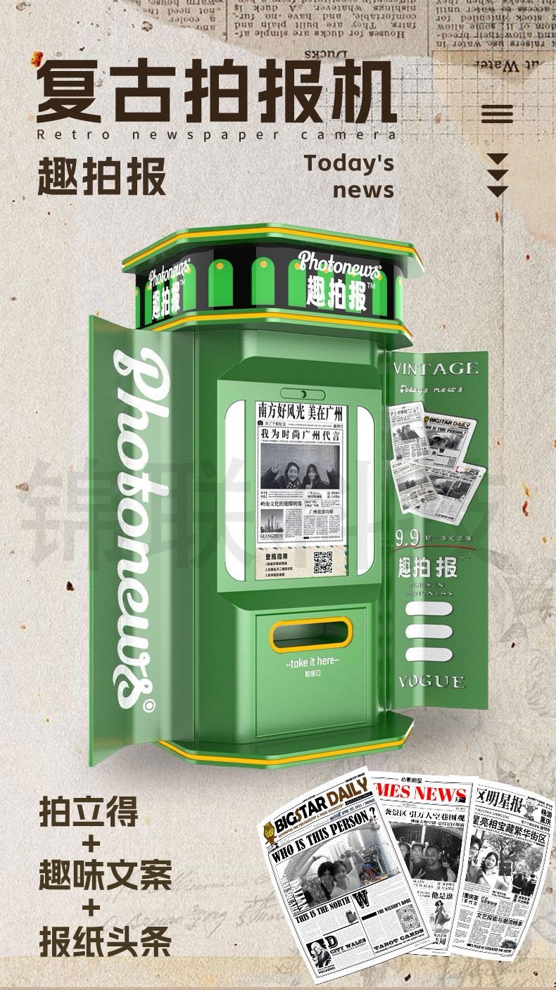 Ретро фотомашина для газет, фотостикеры интернет-звезд, фотостикер, универсальная машина для заголовков, аренда газет для самообслуживания