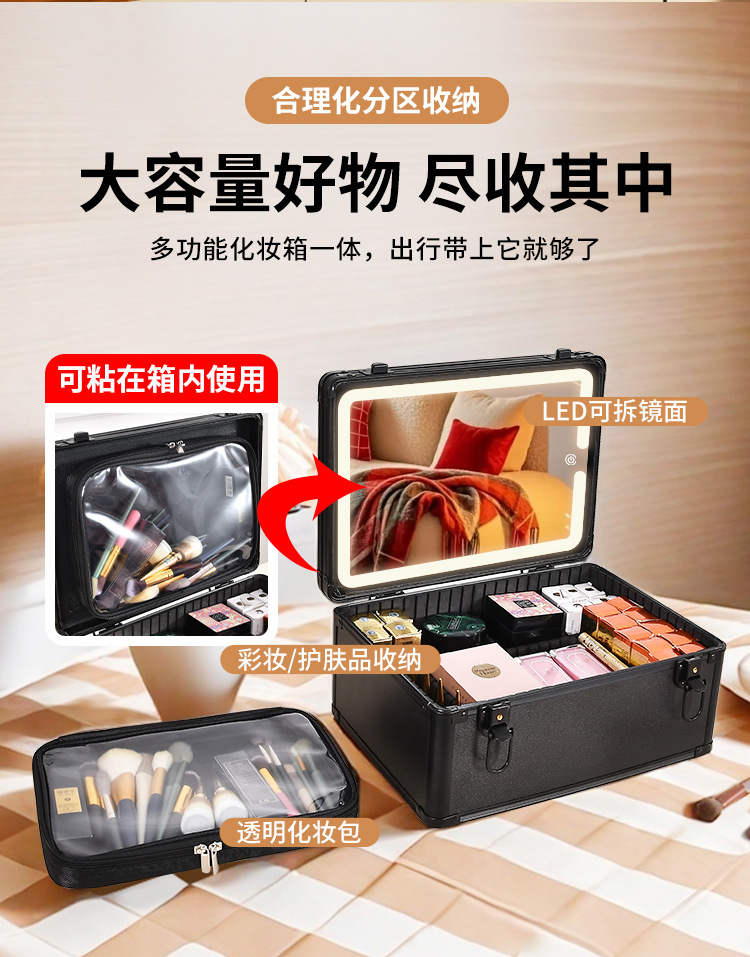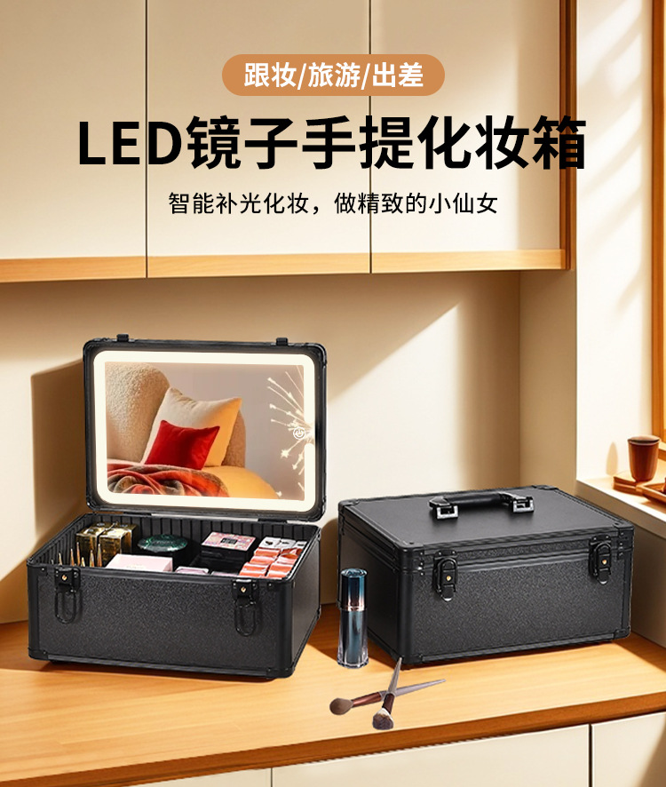 2025 новая модель косметического кейса со светом и зеркалом 10 дюймов 15 дюймов портативная коробка для хранения макияжа