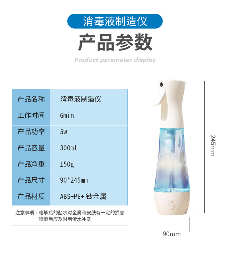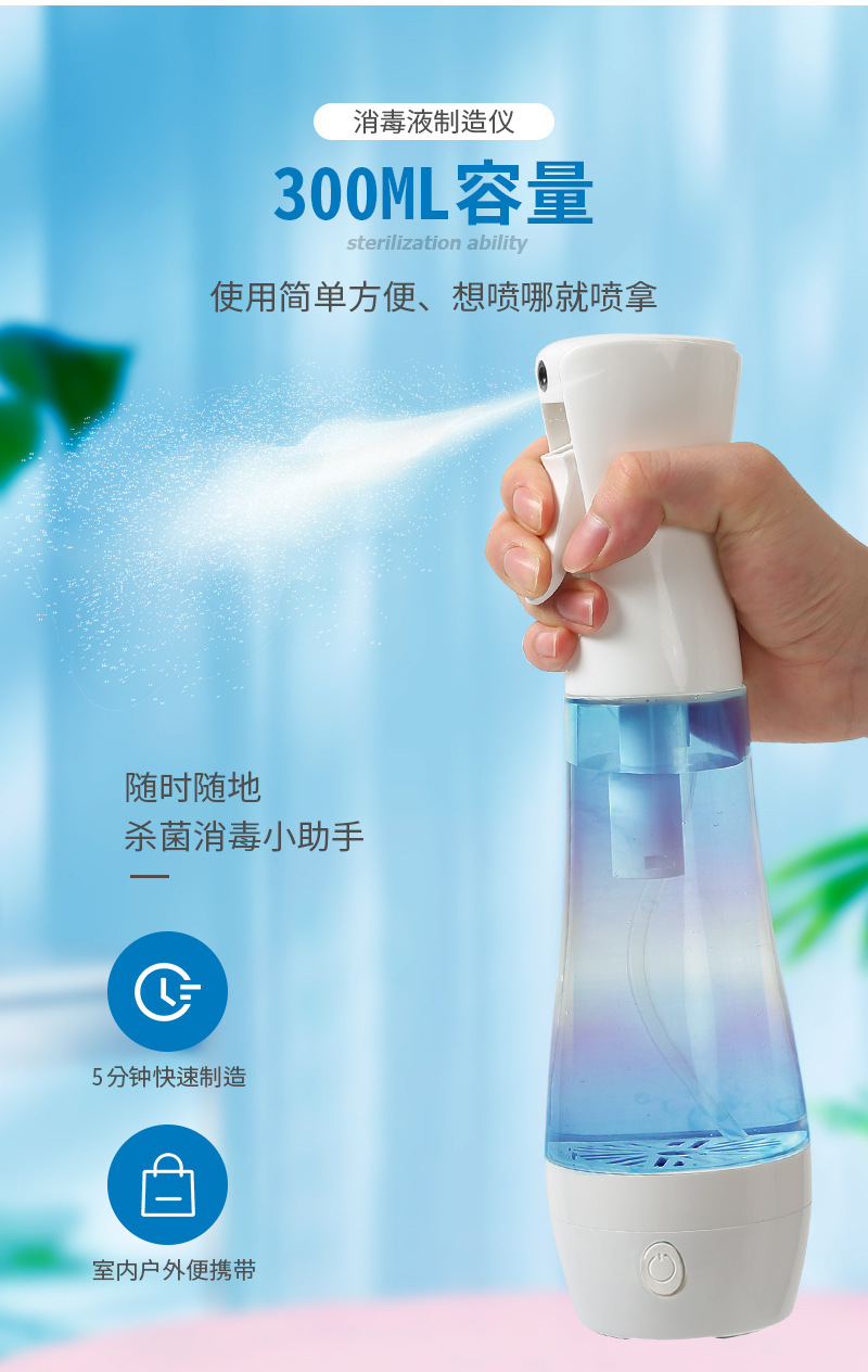 Спот дезинфицирующий спрей для дома, портативный USB, производитель натриевого гипохлорита 84, генератор дезинфицирующей воды