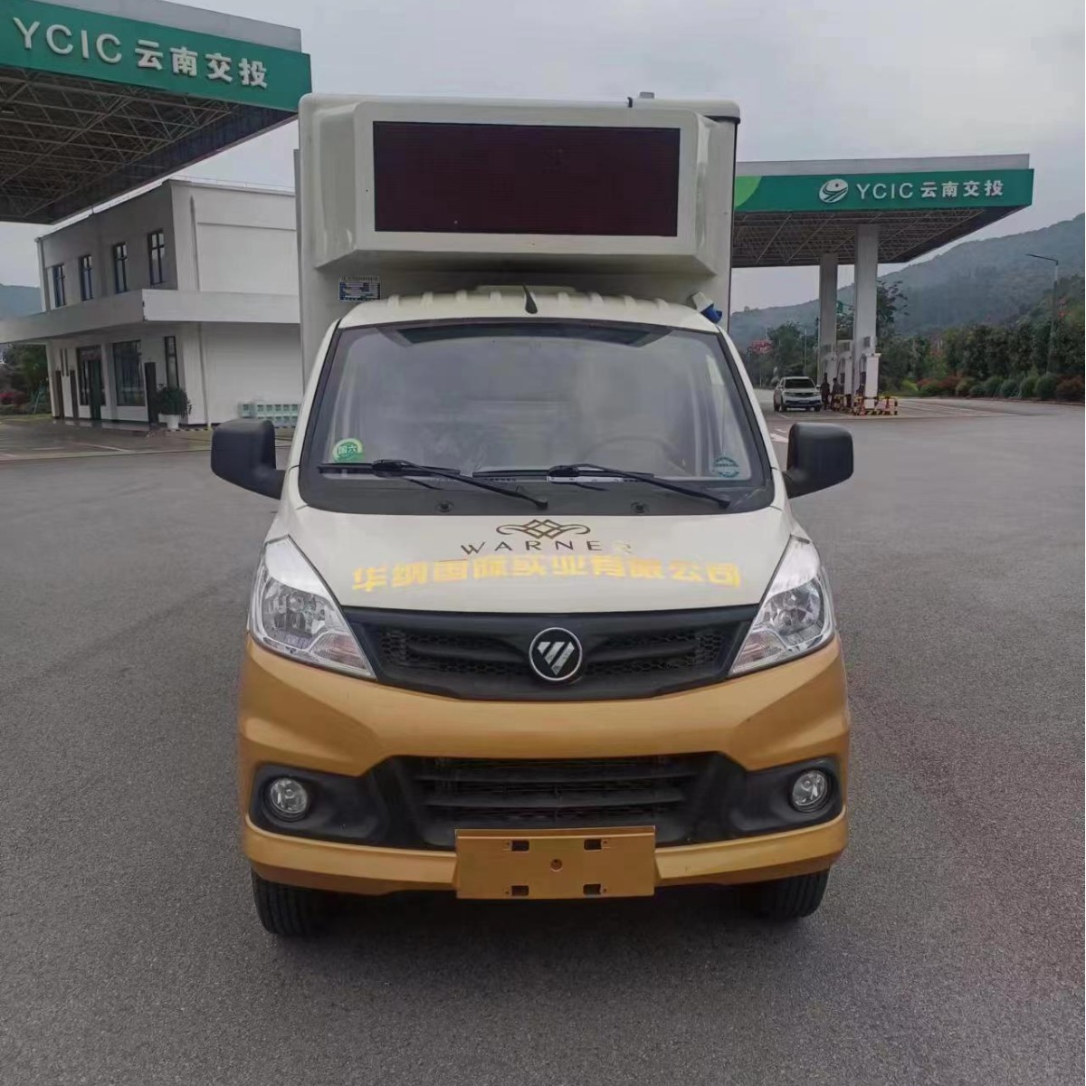 国六 福田康瑞H2宣传车整车型号:CLW5040XXCB6整车尺寸:5995*2180*3200【底盘配置】 轴距:3360mm发动机:全柴115马力排量:2300ml轮胎:700R16钢丝胎其他:ABS,气刹,五档箱,电动门窗,方向助力。【上装配置】1、【LED显示屏】正驾驶侧:户外彩屏,p6,p5 p4可选。P6彩屏尺寸:3840*1728mm=6.63m2P5彩屏尺寸:3840*1760mm=6.75m2P4彩屏尺寸:3840*1760mm=6.75m2尾门单红屏尺寸:1280*1440mm(标配尾门为p10单红字幕屏)2、【滚轴广告灯箱】副驾驶侧:玻璃滚轴广告灯箱,功能:可循环自动播放3-5副广告灯片布(选装双面屏时,无该玻璃滚轴设备)3、【供电系统】柴油发电机1台,品牌:江苏欧玛。类型:静音发电机,水冷,电启动。功率:8kw(单面彩屏配备);15kw(双面彩屏配备)。市电:内外电切换装置,220V市电接口。4、【操作系统】电脑:航嘉工控电脑1台,AOC显示器。控制软件:仰邦或卡莱特。功放:伊威特广播级功放,功率:200W。音柱:4支,功率:30W。5、【通风系统】顶部通风天窗2支,前板百叶窗通风设计,排气扇2支。6、【厢体工艺】碳钢骨架,外蒙1.2冷轧钢板,基层���锈漆,挂腻子,外喷车漆。厢体内部玻璃钢内饰,厢内LED照明,地板铝花纹板。7、【上装配件】彩屏1块,电源盒1个,排线10根,外接电线30米;8、【选装部分】★选装配置1:屏幕液压举升(举升高度1500mm);★选装配置2:液压舞台(约9.6m2)(加装舞台时,需先加屏幕举升功能)。