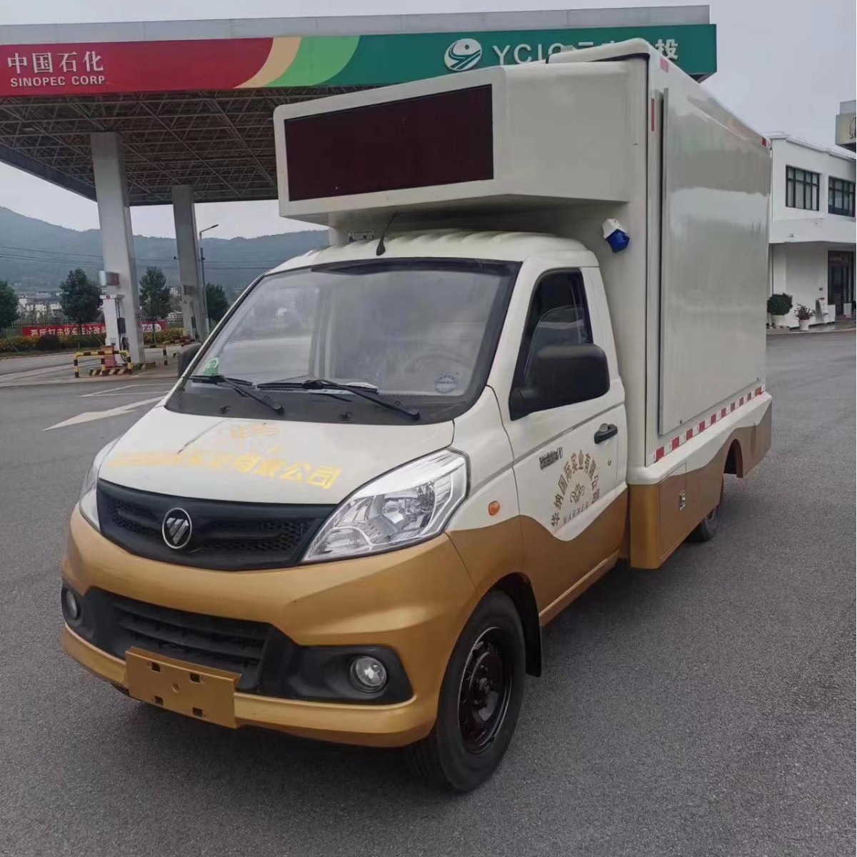 Малый рекламный автомобиль Foton, национальный рекламный автомобиль Vi Led, двухсторонний стеклянный роллер, один красный экран сзади