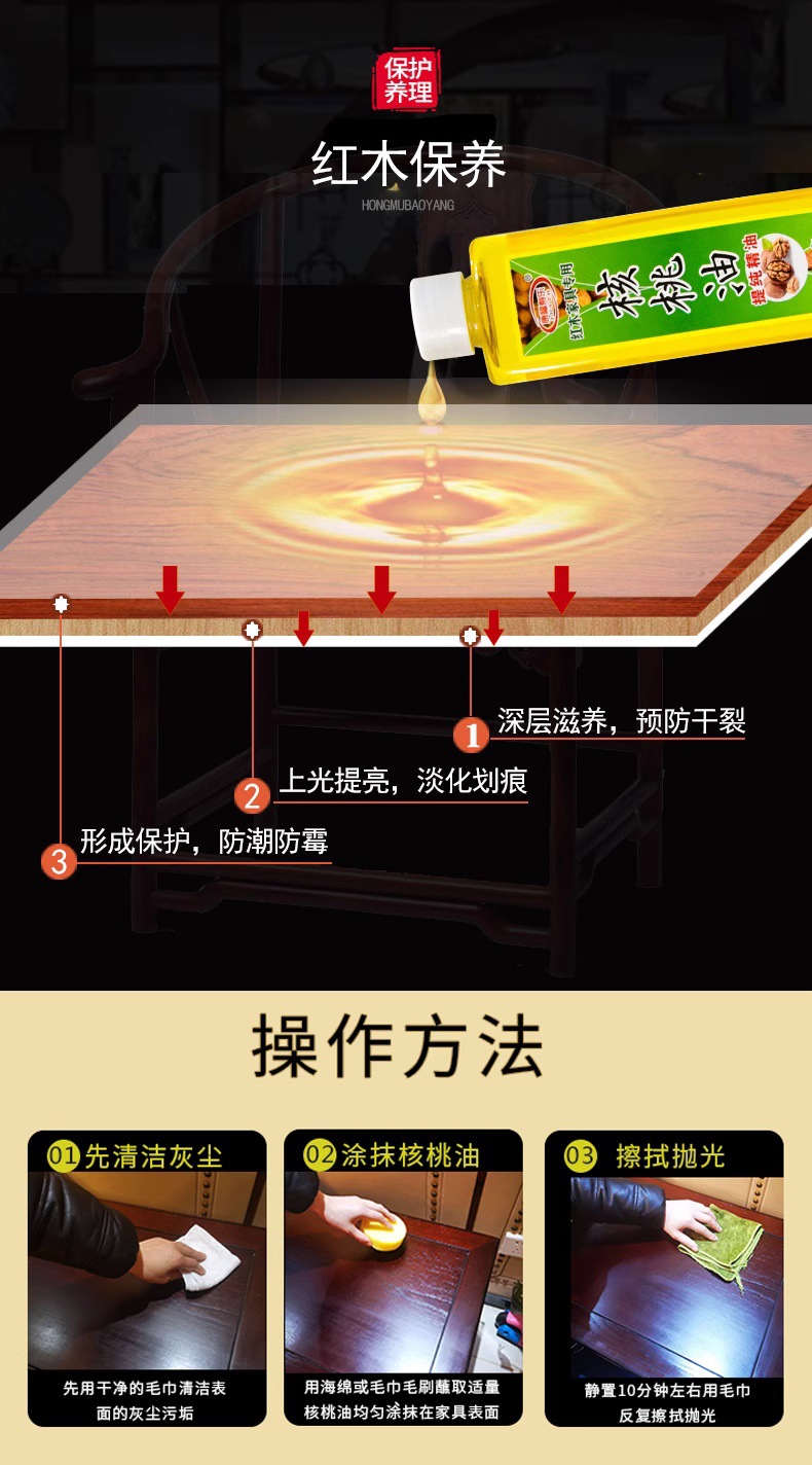 Масло для ухода за красным деревом Kangfushuole, ореховое масло для браслета из грецкого ореха, цветное покрытое масло для защиты от трещин