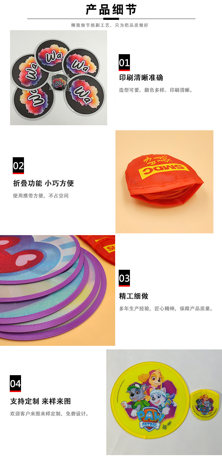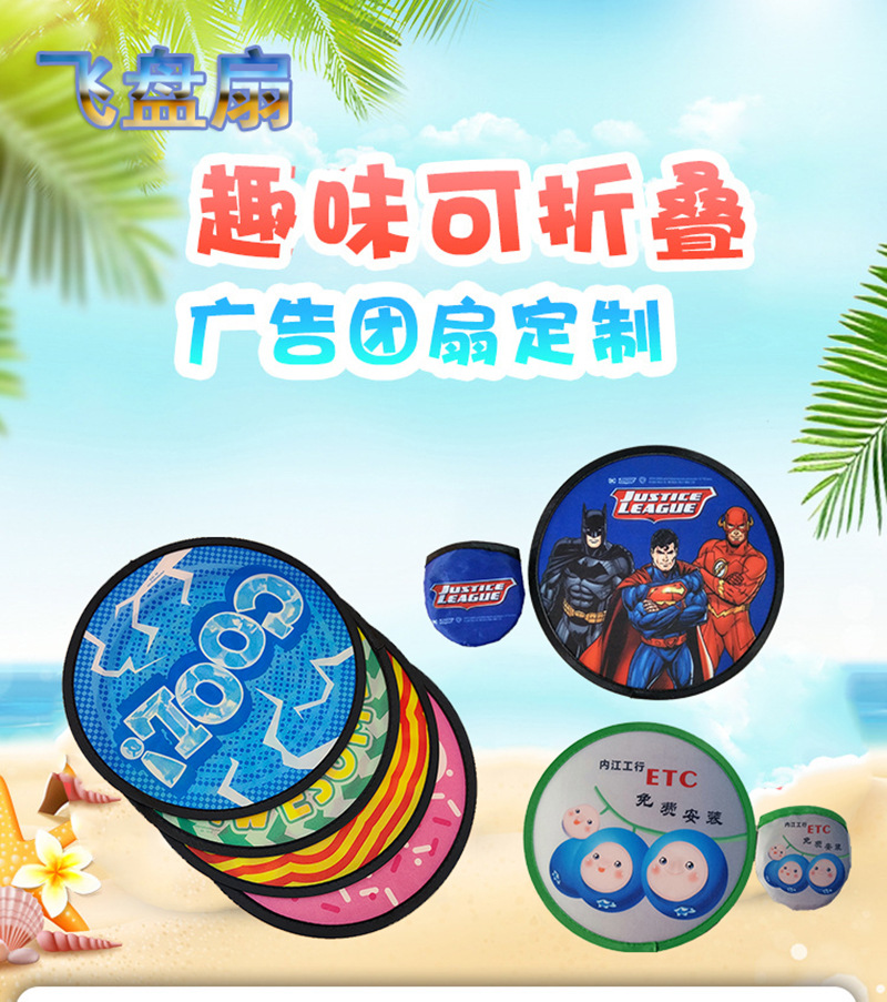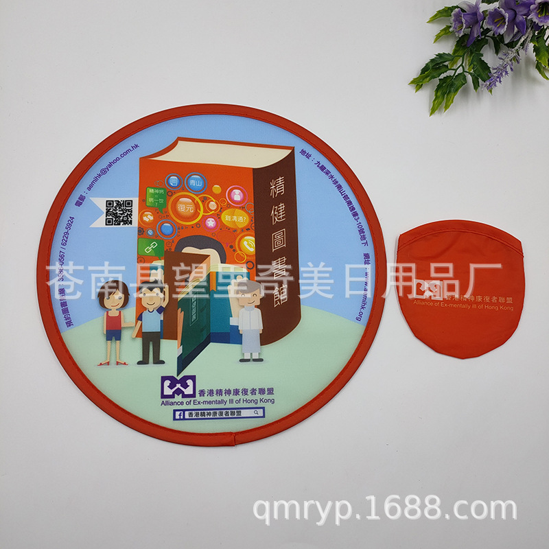 Прямые продажи от производителя, большая цена, низкая цена, складной портативный вентилятор из ткани, полиэстер с печатным узором, мини креативный складной фрисби