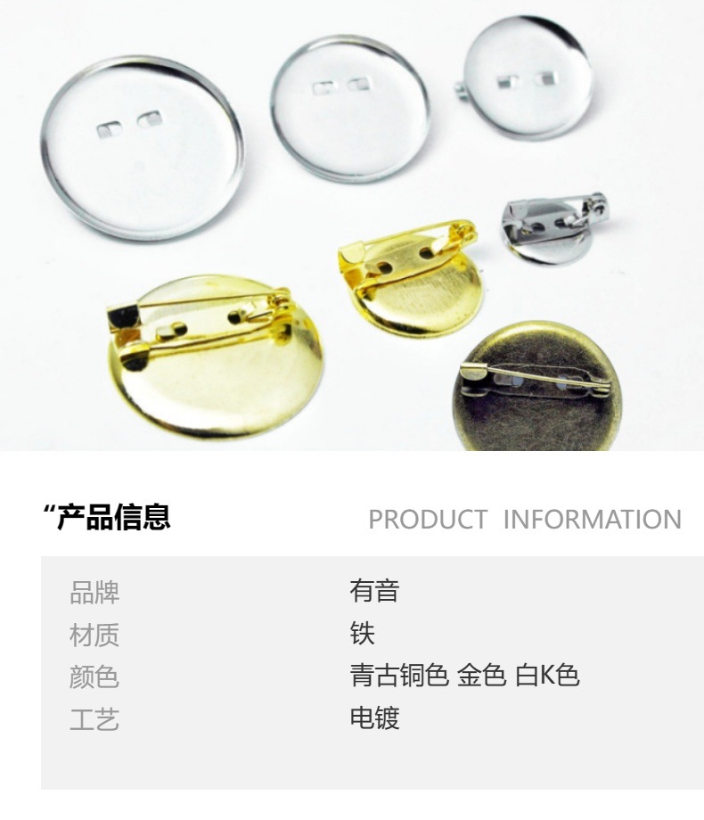 Дий брошь аксессуары 3см ретро золото без никеля европейский стандарт дисковая булавка тканевая брошка с подносом оптом Новая
