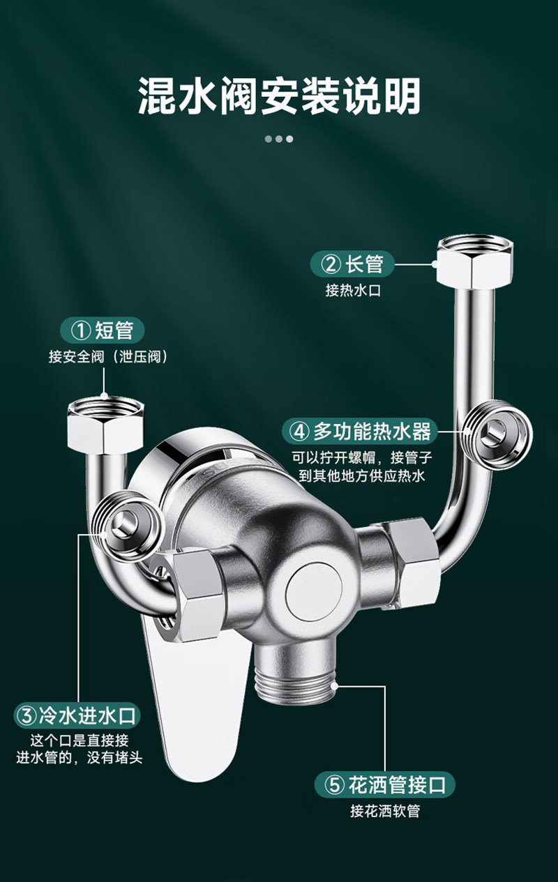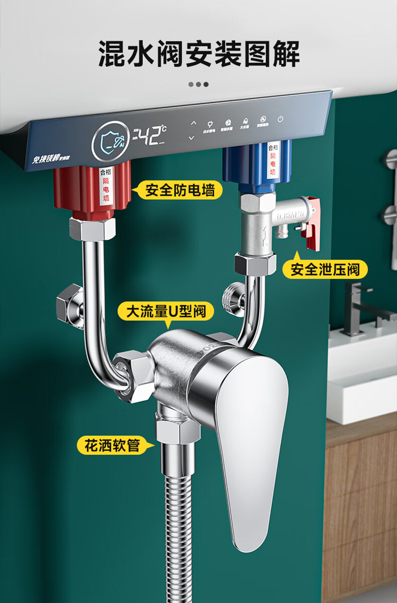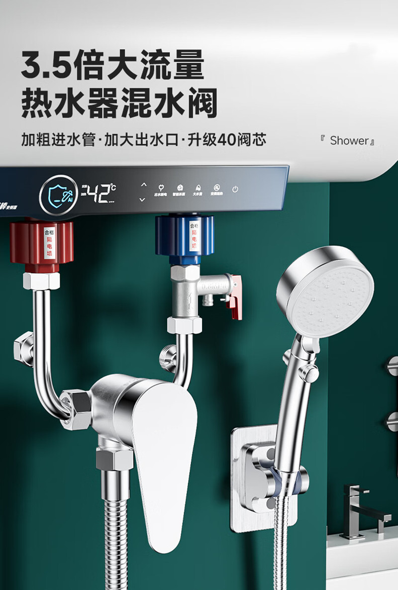 Смесительный клапан большого потока для электрического водонагревателя в ванной, U-образный клапан из 304 нержавеющей стали, настенный смеситель для душа