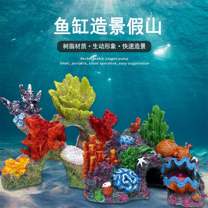 .鱼缸造景装饰品:珊瑚贝壳类、树脂装饰品、仿真水草、鹅卵石、彩砂、压克力石等。