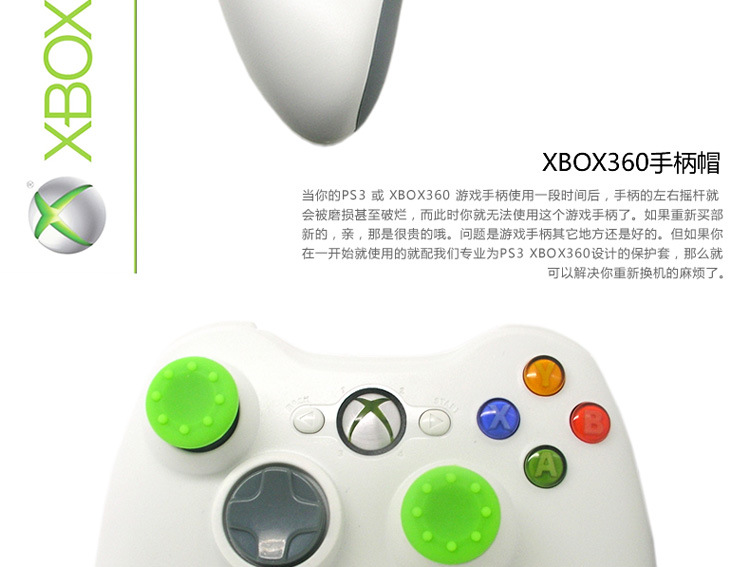 当你的PS3 或 XBOX360 游戏手柄使用一段时间后,手柄的左右摇杆就会被磨损甚至破烂,而此时你就无法使用这个游戏手柄了。如果重新买部新的就可惜了。问题是游戏手柄其它地方还是好的。但如果你在一开始就使用这款专业为PS3 XBOX360设计的保护套,那么就可以解决你重新购买手柄的麻烦哦,同时也保护了你心爱的手柄哦!