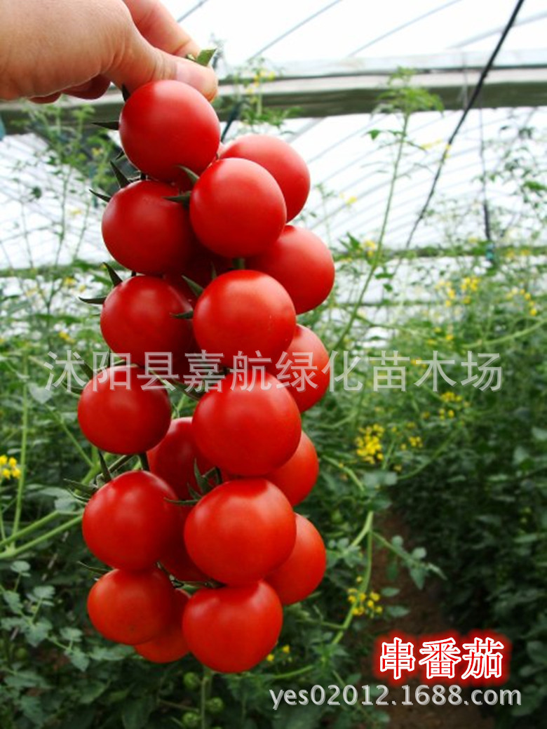 主要习性:串番茄是由国外引进的新型番茄品种,单果重80克左右,成熟后整串收获不易脱落;果实红色,大小、形状和颜色整齐一致,耐储运。定植密度不宜太大,早熟栽培行株距60*40厘米,留3-4朵花穗后掐尖封顶;定植前要施足底肥,结果后要及时追肥。
