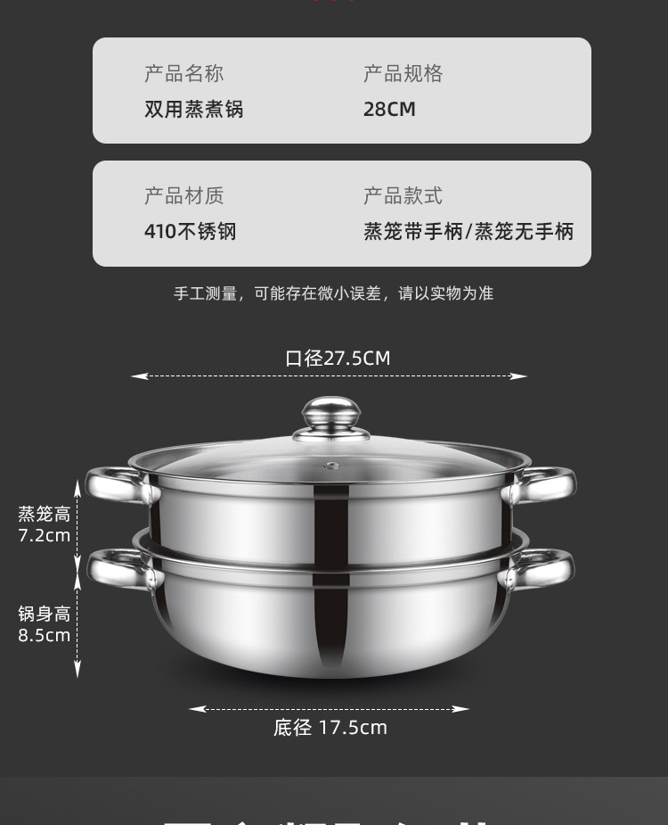 Прямые поставки с завода 28 см утолщенная двухслойная трехслойная пароварка многофункциональная кастрюля для горячего блюда пароварка из нержавеющей стали подарок