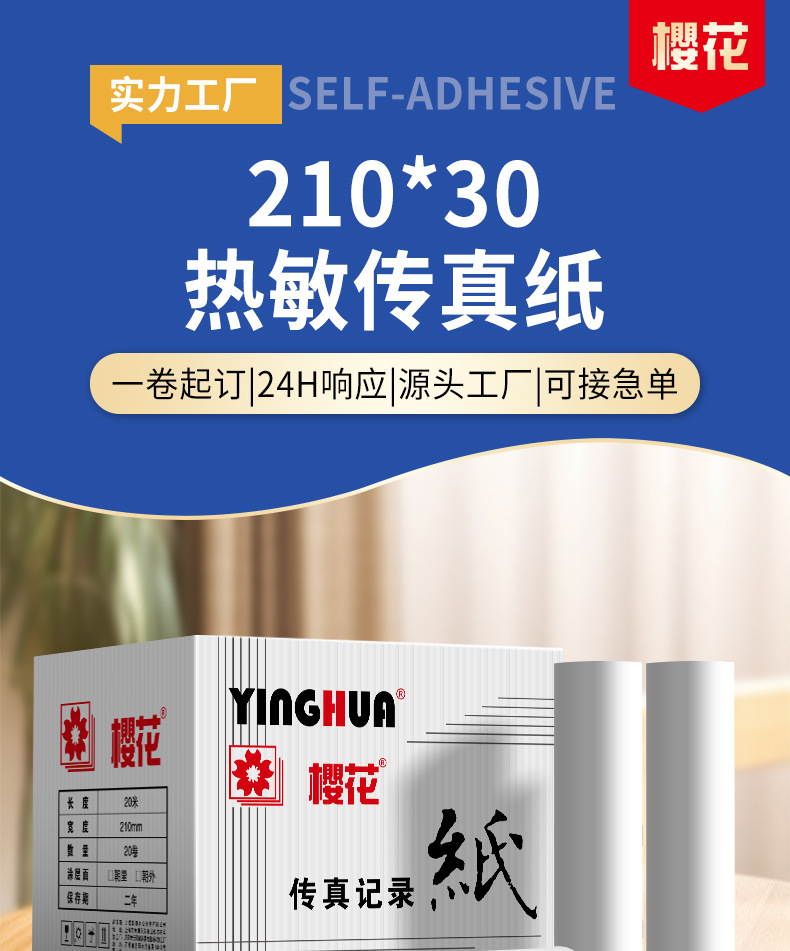 Термобумага Sakura для факсов 210*30 Офисная печатная бумага Термобумага 20 рулонов в коробке Пользовательская термобумага для факсов