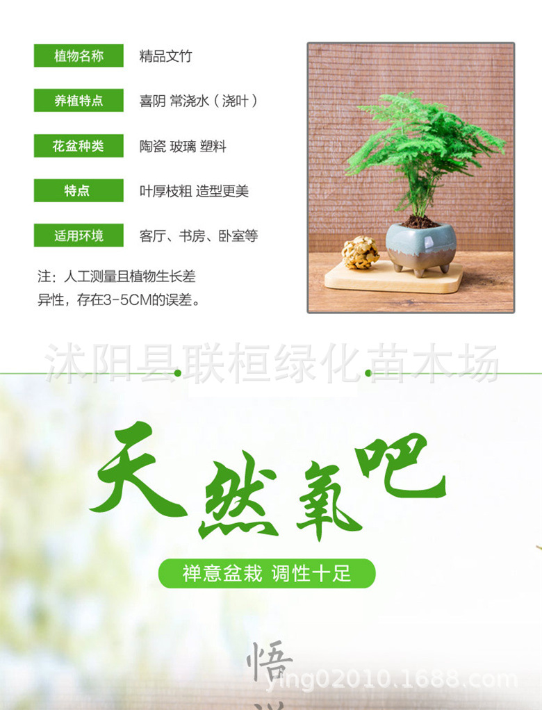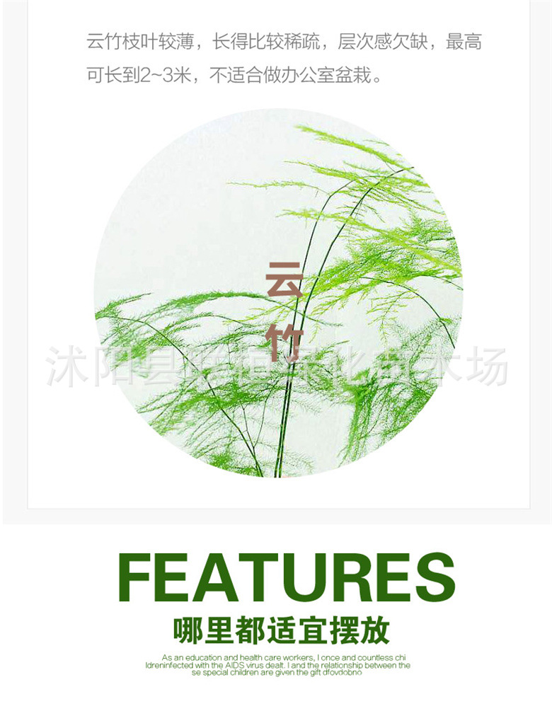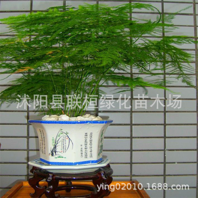 挺拔秀丽的文竹1.栽植��季栽植或翻盆换土。多采用盆栽。肉质须根,在生长过程中对土壤要求严格,盆栽采用腐叶土与少量细沙充分混合的培养土,要求土壤通气、排水良好。每年换1次盆土。待根系长满盆时再更换大盆。换盆时把外围的须根剪掉,并去除一部分旧盆土,添加新肥土。随着植株的生长、高大,应插设支架。