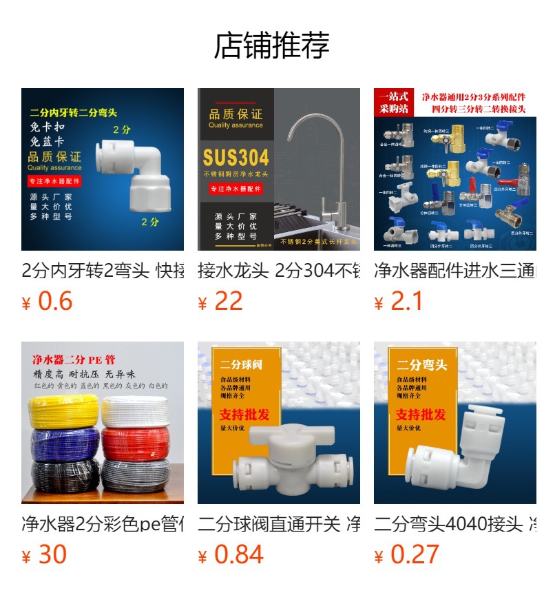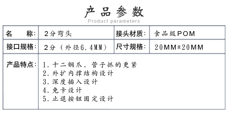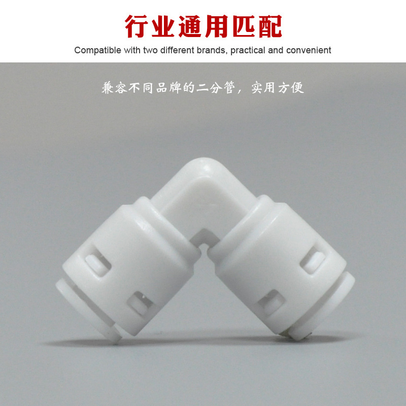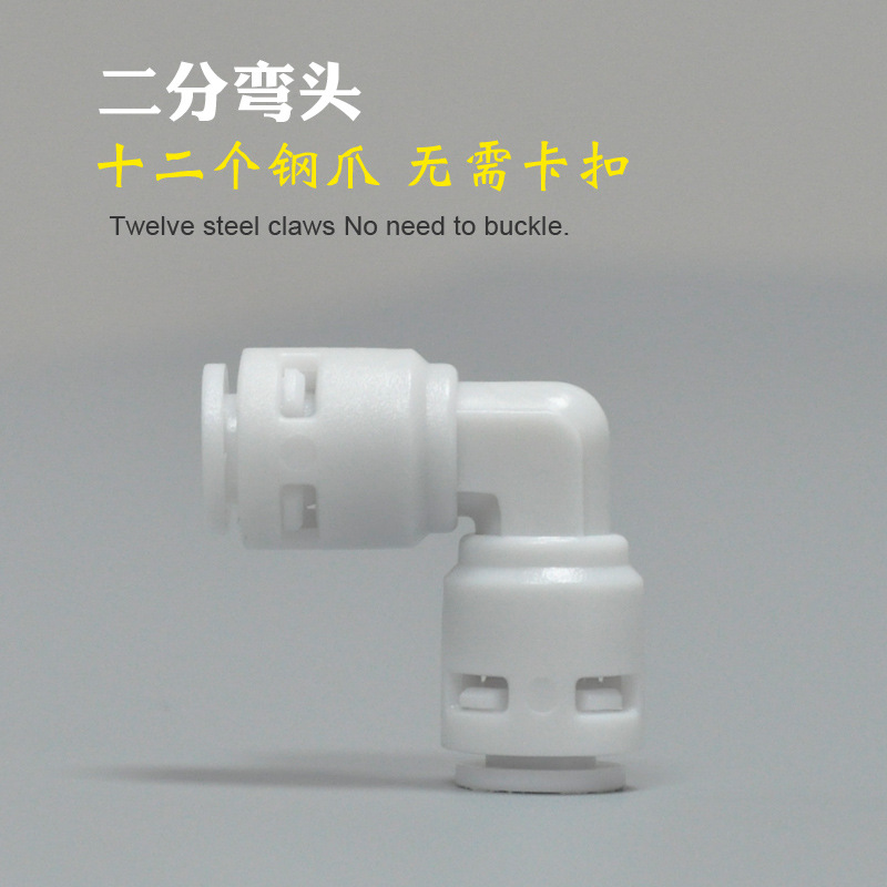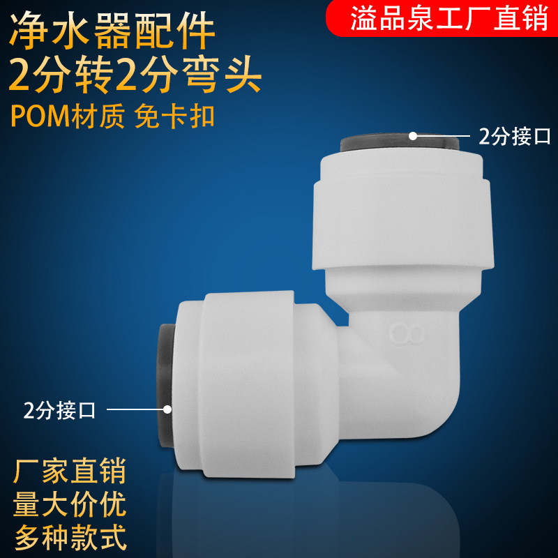 溢品泉(YPQ)免卡扣快速接头2分弯头, 可以配套2分水管接RO膜壳或超滤膜壳。免去2分螺母,安装更省力省心!