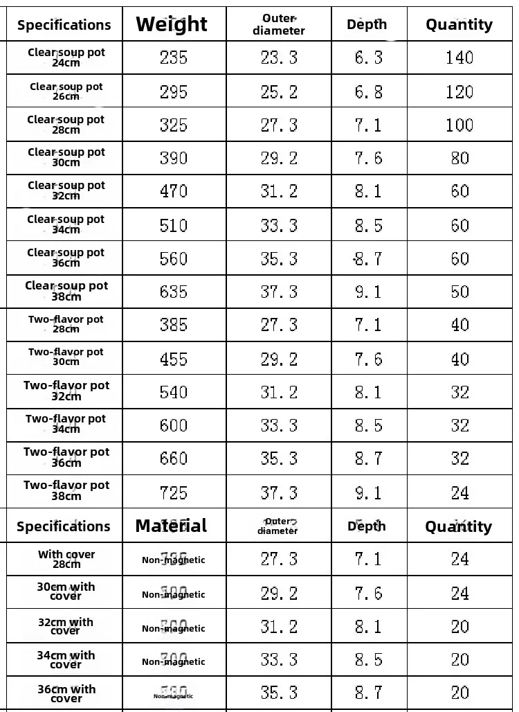 📦 | 0.4mm thick | 32cm soup pot with lid (20 sets/box) | ¥17.0 / ≈ 205 ₽ | 3253 | 5948847593381 | |