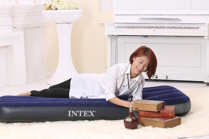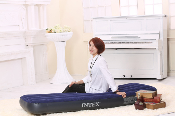 Оригинальный подлинный надувной матрас Intex Luxury Stripes с флокированным покрытием, односпальный, для палатки, стиль 64756
