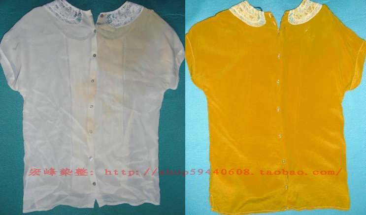 下面这件84消毒水漂坏的白色桑蚕丝上衣,用1包金黄色的