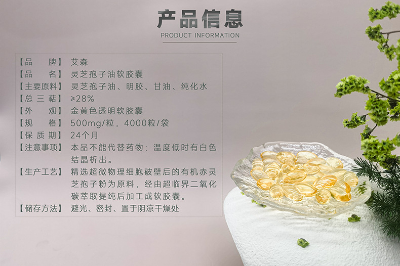 Масло спор Ганодермы Лусидум в мягких капсулах, экстракт Ганодермы Лусидум 500 мг, Сансян, 28%, сырье для здоровья, производитель