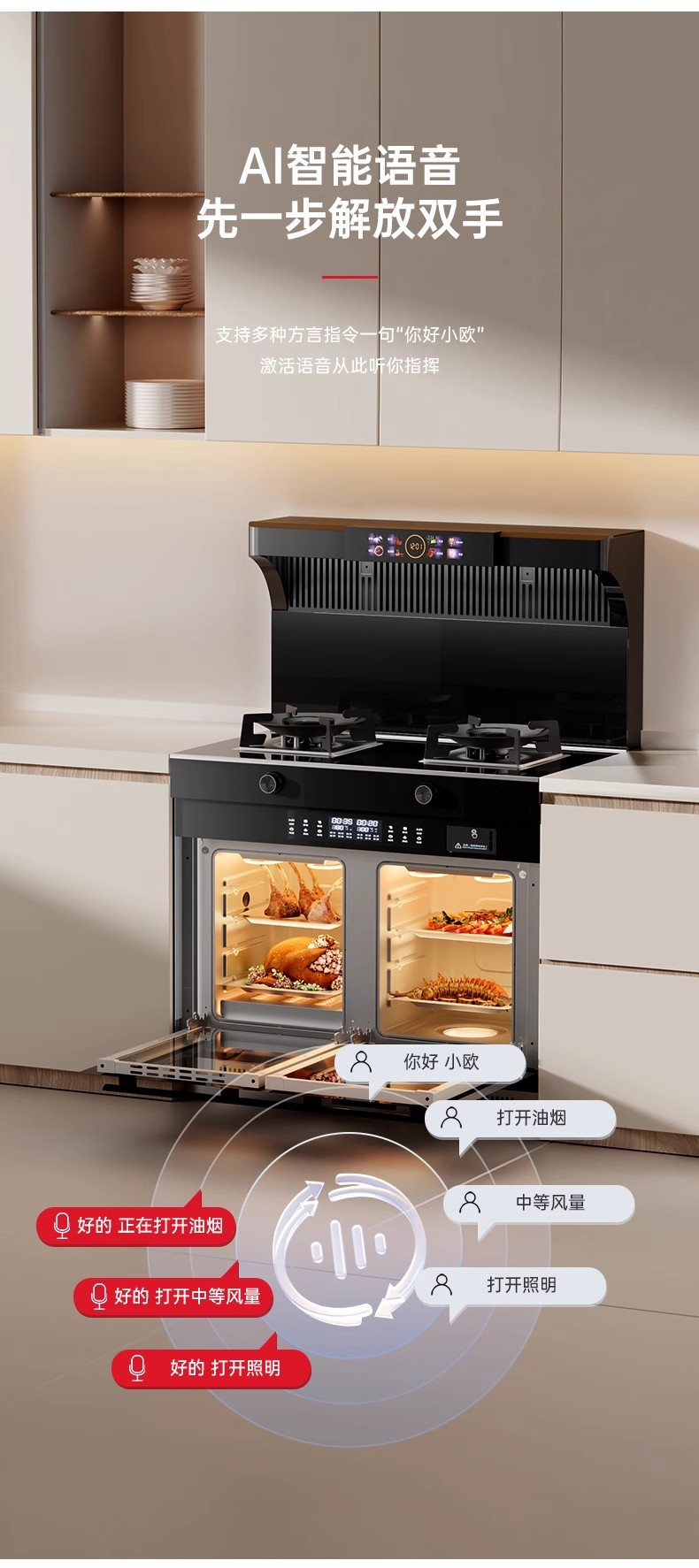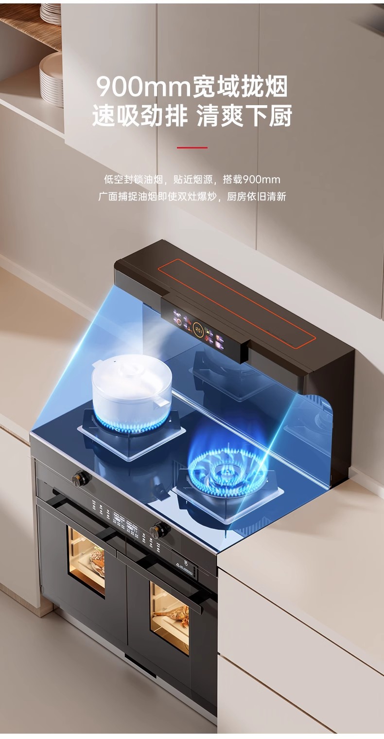 Интегрированная кухонная плита с боковым отсосом, вытяжка с понижением, паровая духовка, большая вытяжка и газовая плита для домашнего использования