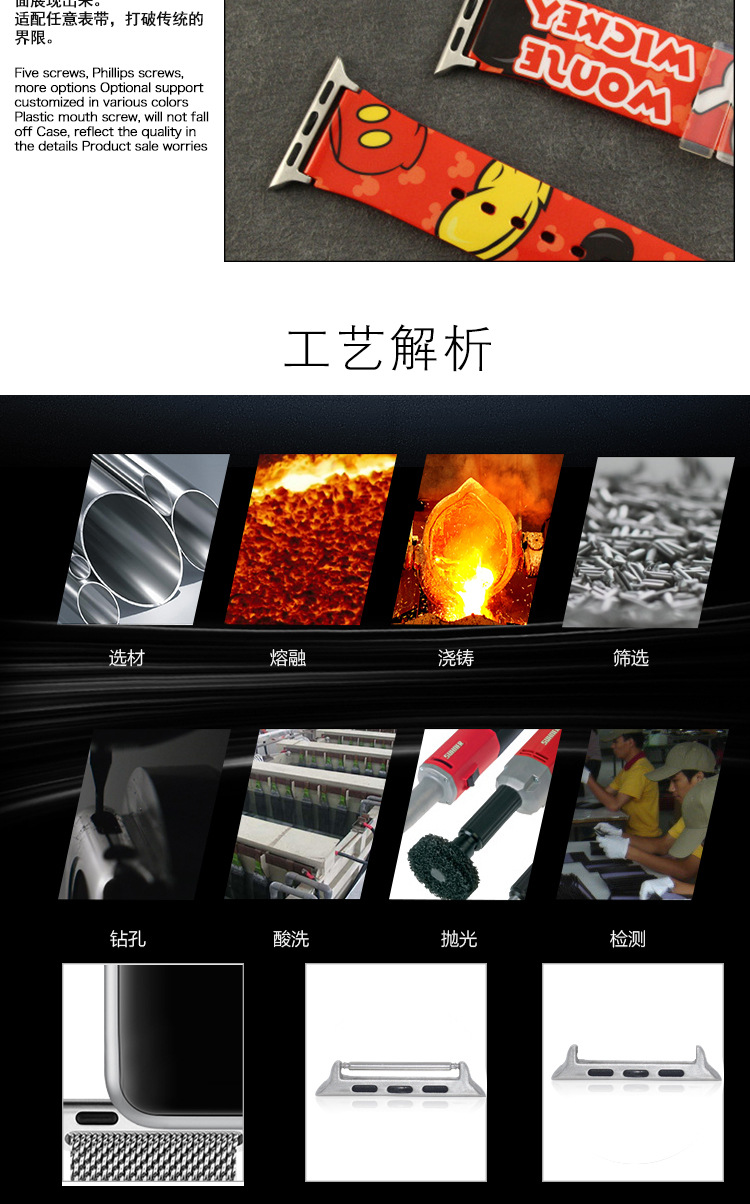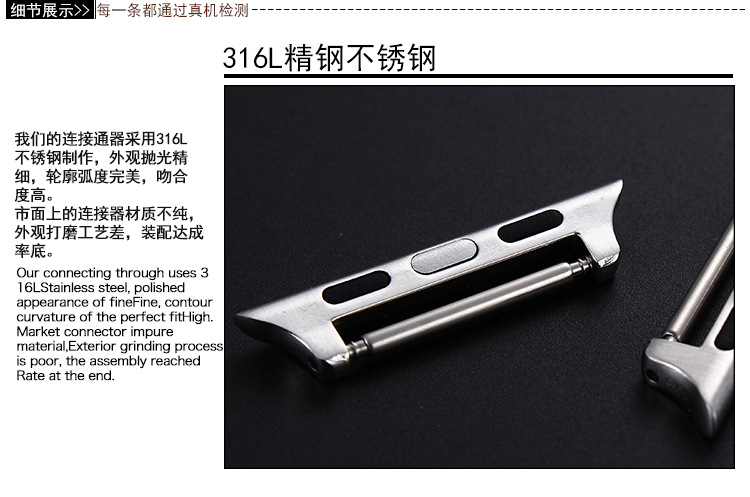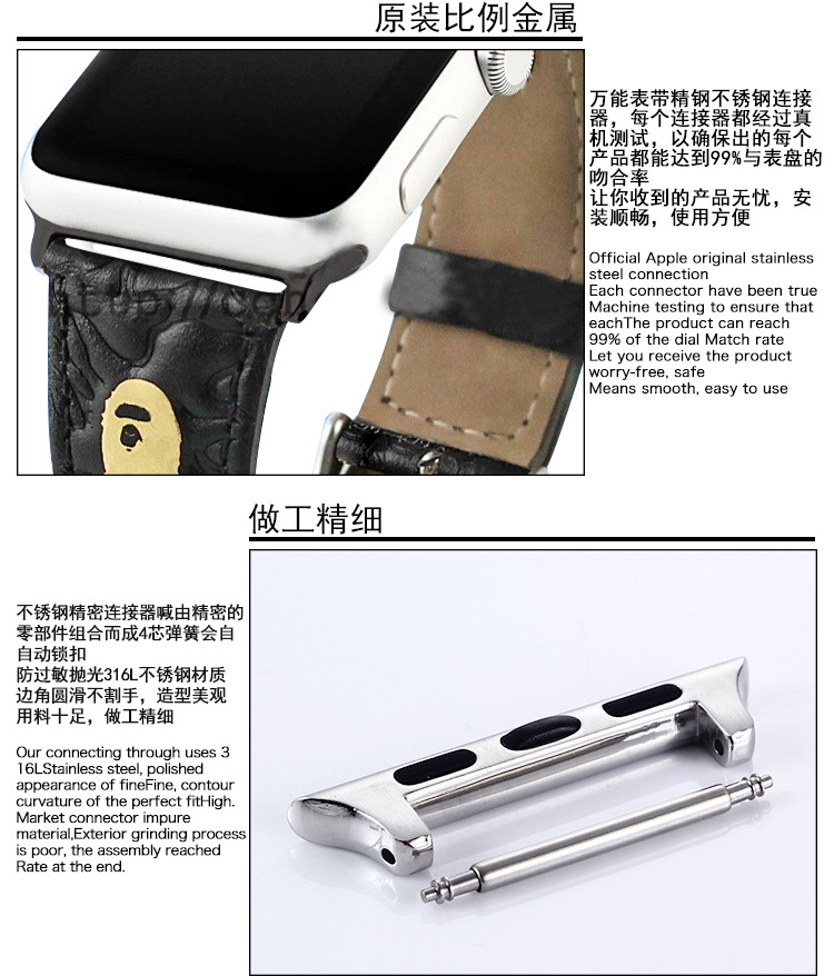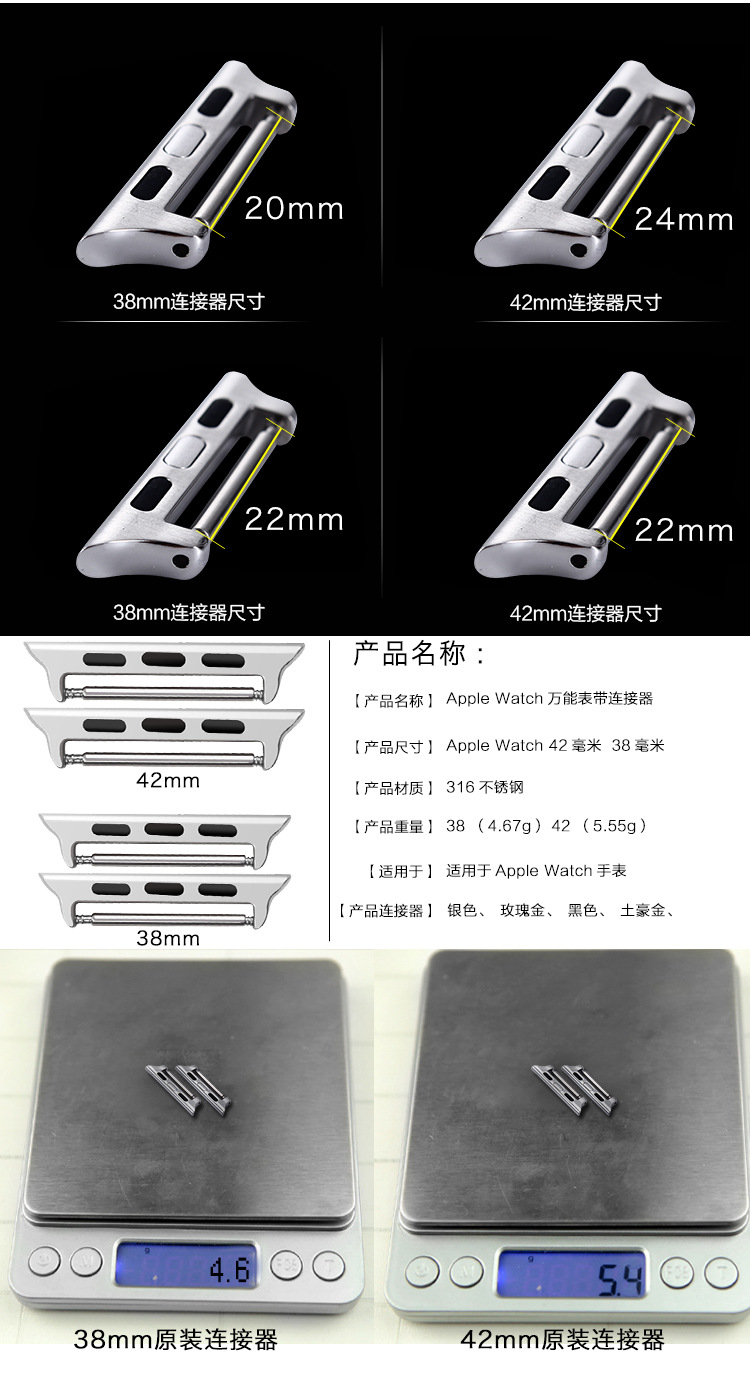 生耳连接器42mm的对应表带宽为:16/18/20mm/22mm/24mm