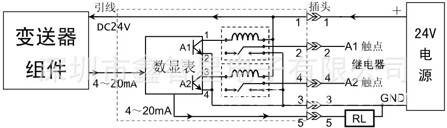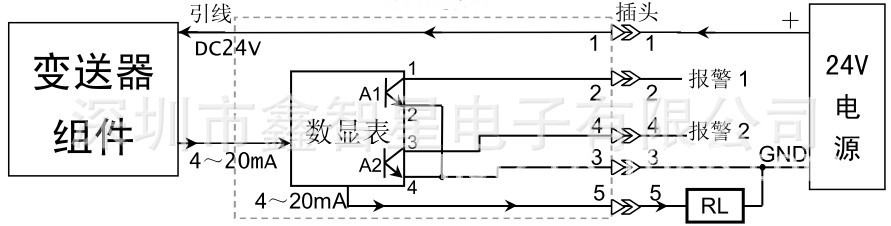 注:光耦报警型报警端对地线可通过DC20mA电流,可供直接外控最大16A继电器。