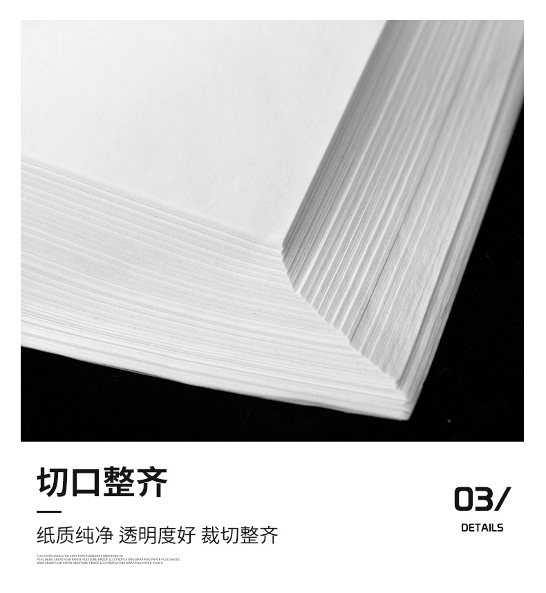 腊光纸特点:又叫半透明纸,拉力好、密度均匀、防潮性优良,纸质坚实光滑、细腻柔软、有光泽。呈半透明状(透明度为70%~80%)。具有良好的防油性和不透气性。有良好的印刷适应性,但对油墨有选择性。