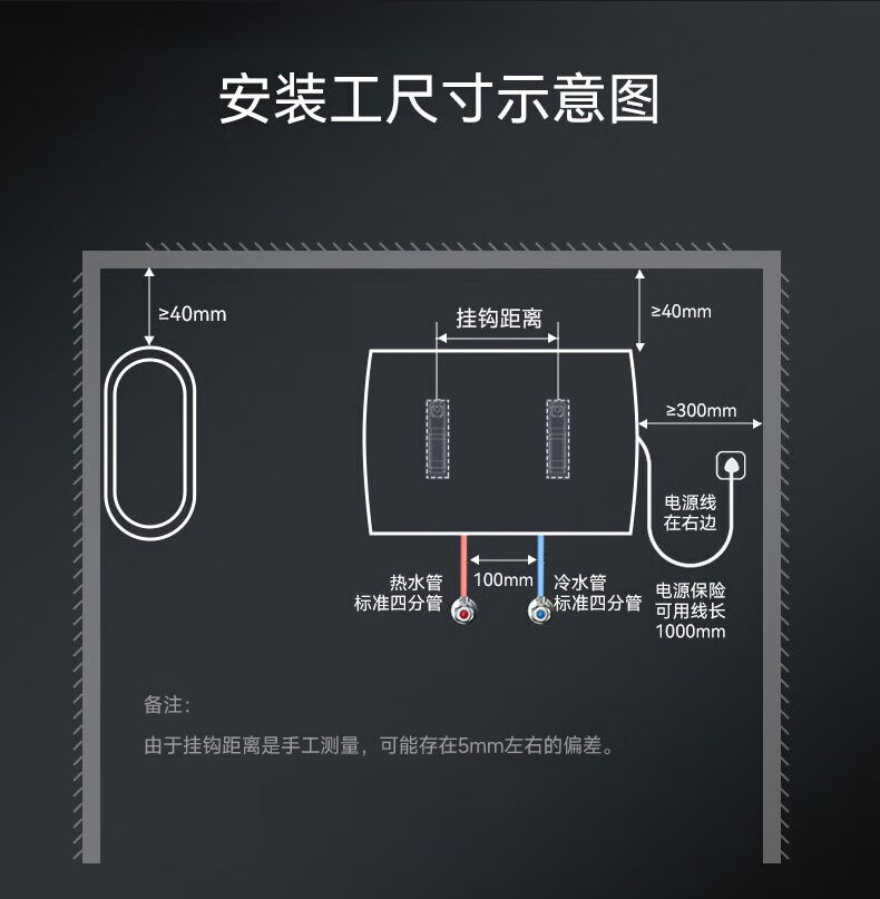 电热水器属于大件电器,请务必先验货再签收,自签收后24小时内有效时间反馈破损情况都可以联系我们安排原快递返回。签收后超过24小时后的破损反馈退回按七天无理由处理,寄出退回运费需要客户自行承担。发出后机器已到代收点请尽快安排自提,如无故拒收需要客户自行承担发出运费。电热水器属于大件电器,如收到货后不想要了需要承担部分发货运费。请确认好尺寸再购买。端盖破损安排补发端盖配件,不在破损退货退���范围之内。电热水器外壳焊接线在后挂板处,每一个机器都有的哦,是正常现象请放心使用