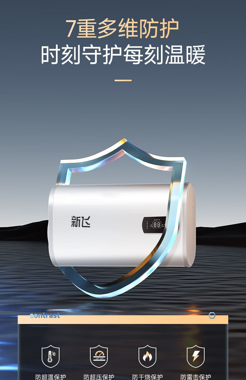 Электрический водонагреватель Xinfei, 60 литров, накопительный, быстрое нагревание, энергосбережение, мгновенный выход горячей воды, защита от отключения, постоянная температура