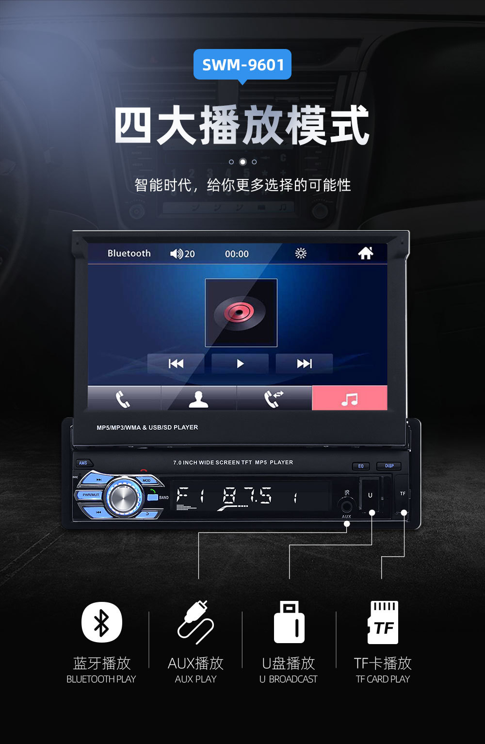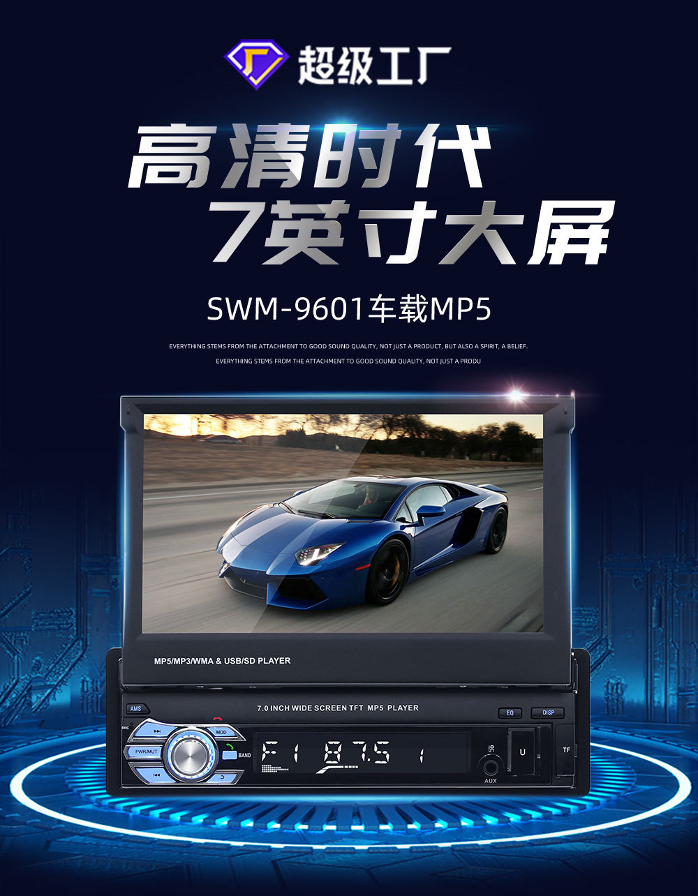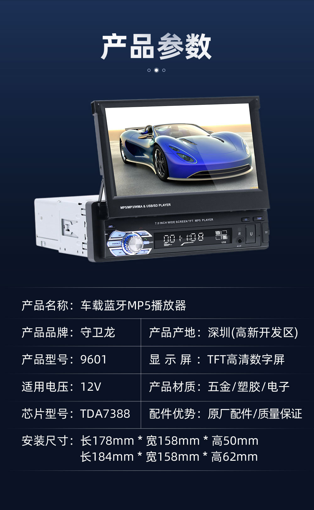 Телескопический автомобильный MP5 плеер 7 дюймов, Bluetooth, приоритет обратного вызова с MP3 радио, модель 9601
