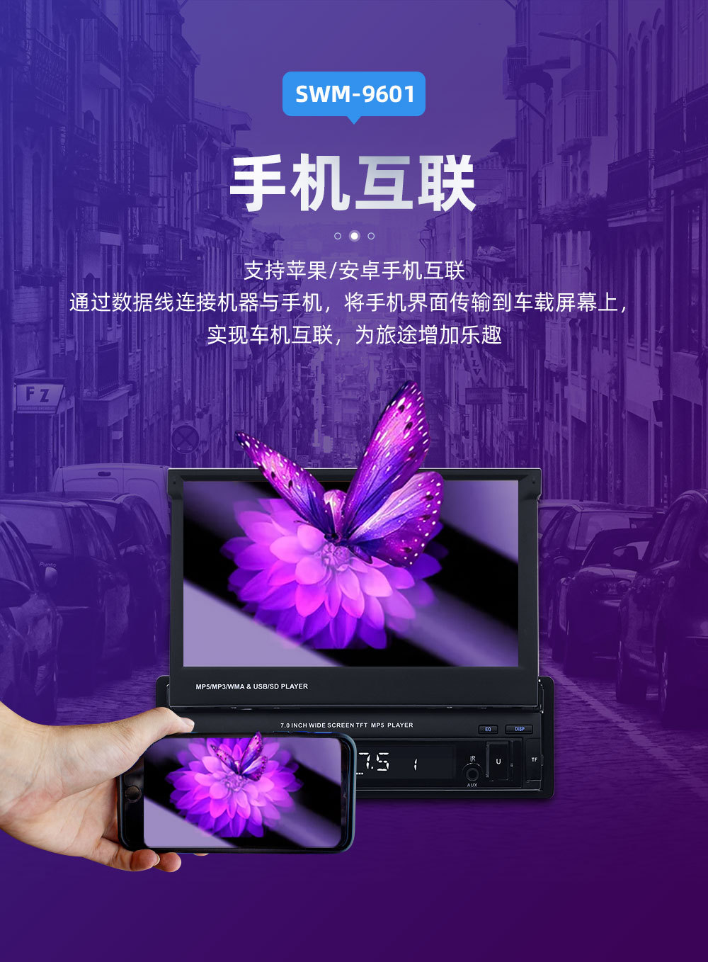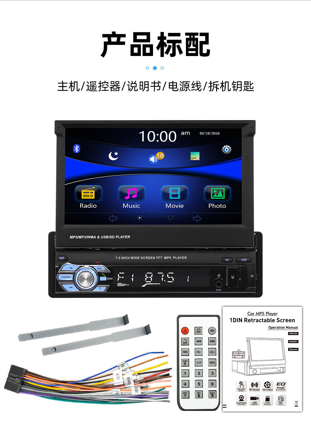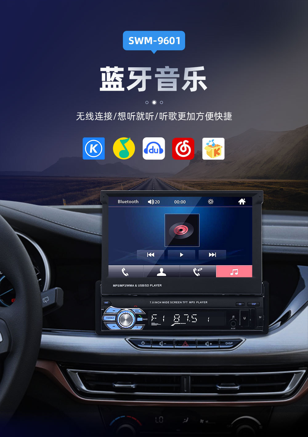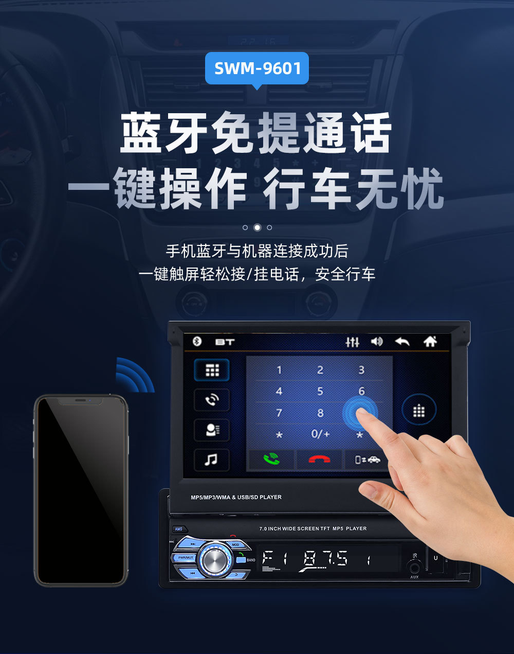 Телескопический автомобильный MP5 плеер 7 дюймов, Bluetooth, приоритет обратного вызова с MP3 радио, модель 9601