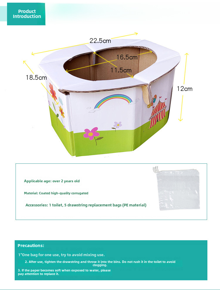 - Compact and Portable:This children's mini travel toilet is designed to be compact and portable, making it easy for your child to use while on the go.