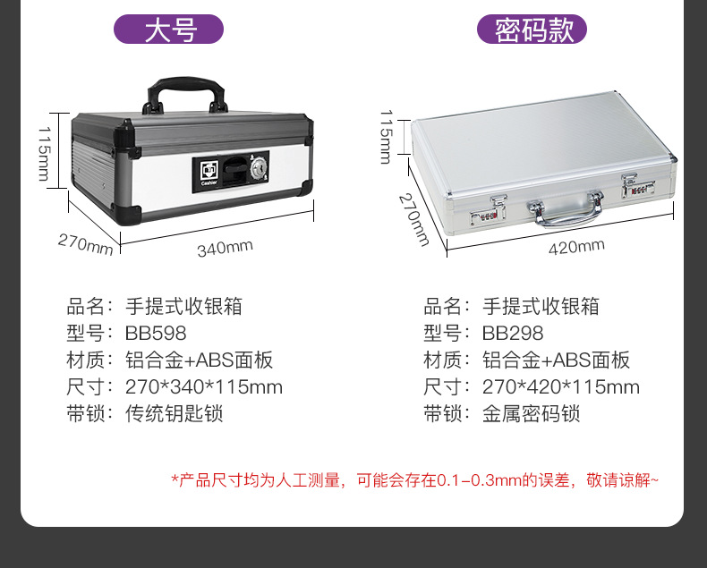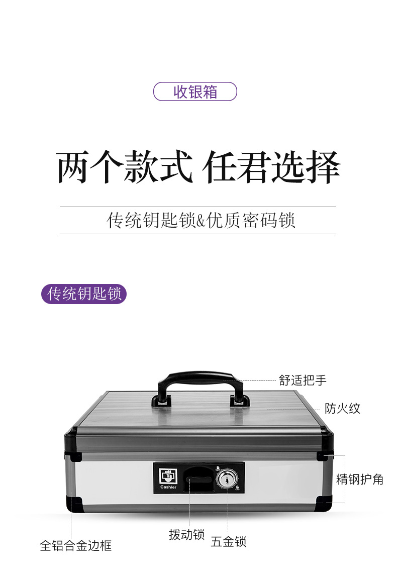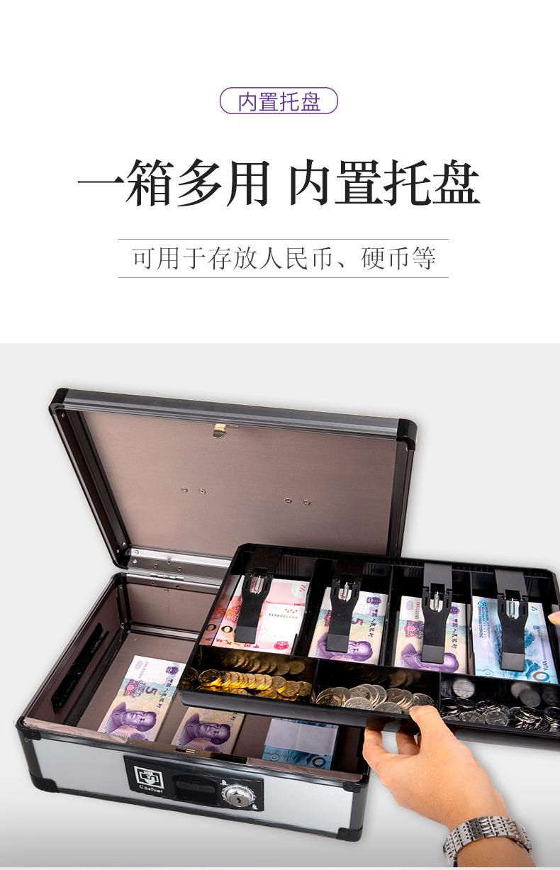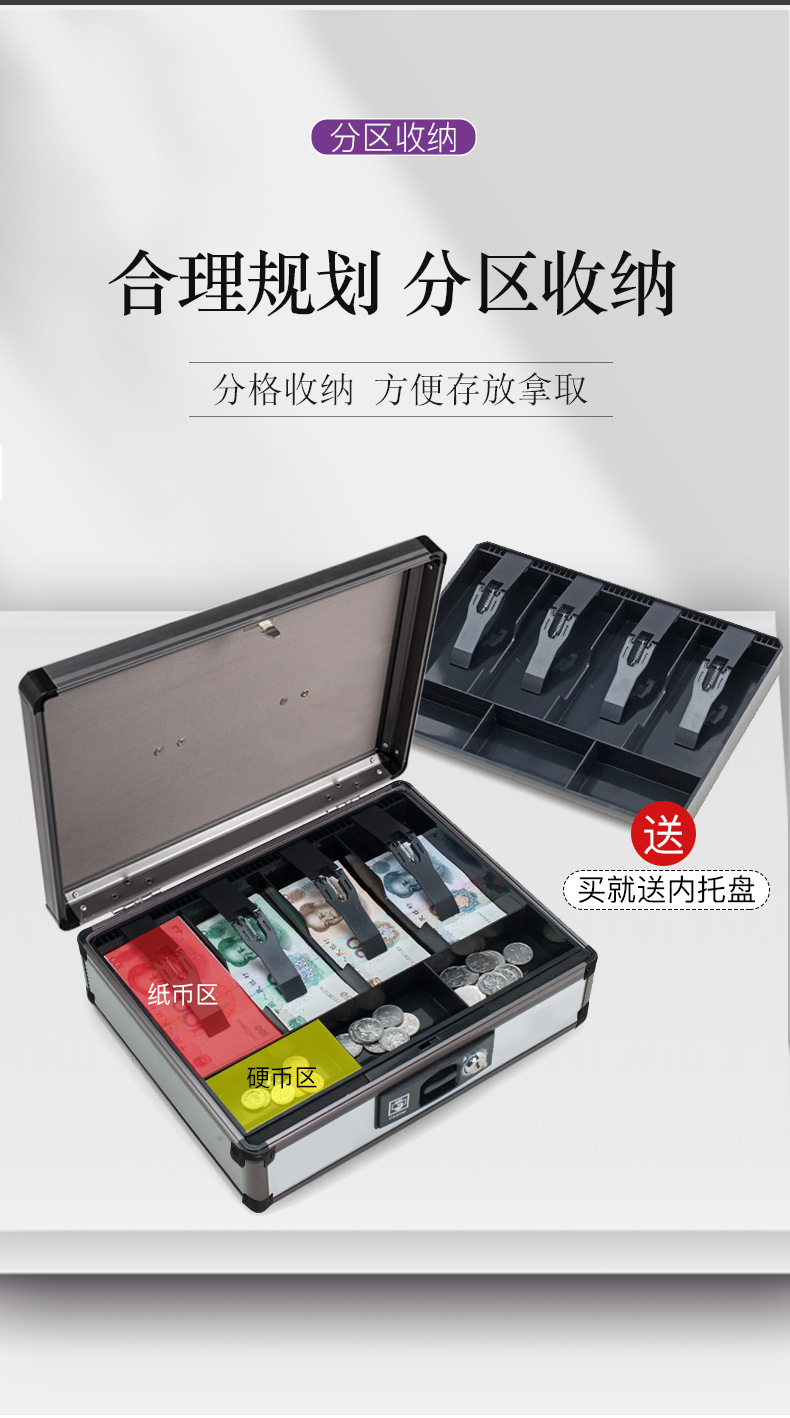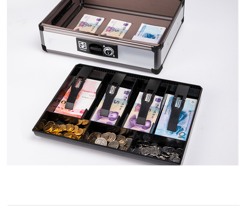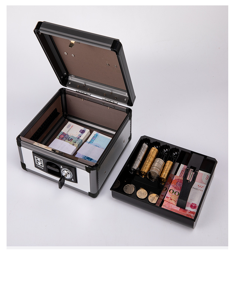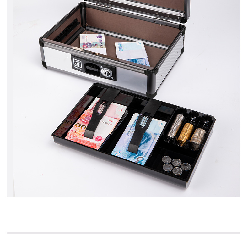 Портативный ящик для наличных из алюминиевого сплава с замком двойной ящик для наличных финансовый банковский сейф супермаркета