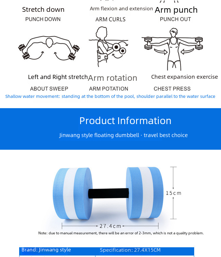 - EVA Floating Design:The EVA floating design of this dumbbell allows for easy use in water-based workouts. It keeps the dumbbell afloat, ensuring safe and efficient exercise.