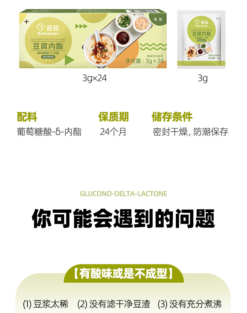 Байцзюань лактон, сырье для производства тофу, коагулянт, глюконолактон, 3г/пакет, 24 пакета/коробка