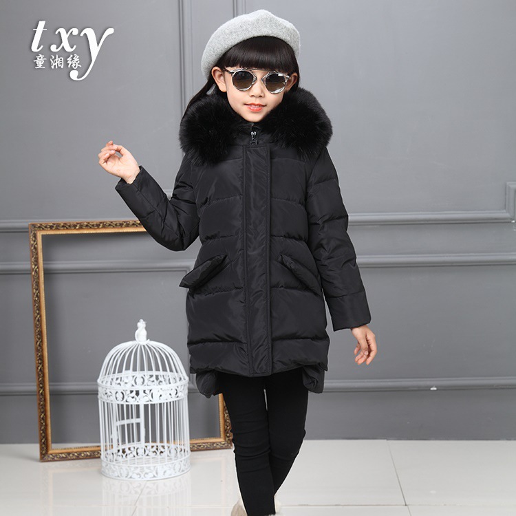 Новая утолщенная средне-длинная пуховка осень-зима, большая детская куртка из утиных перьев