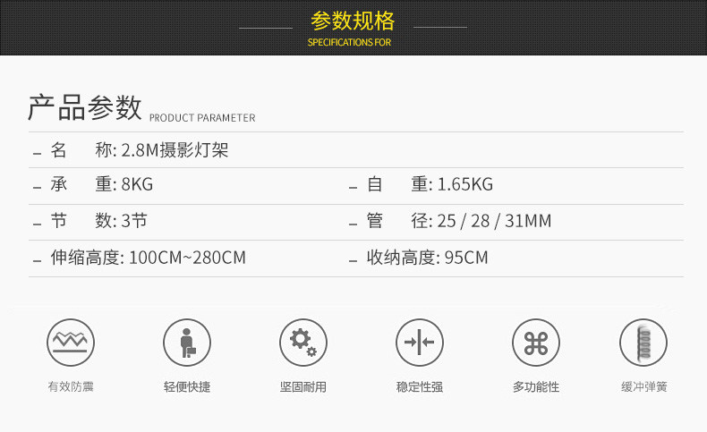 产品名称:2.8M摄影灯架