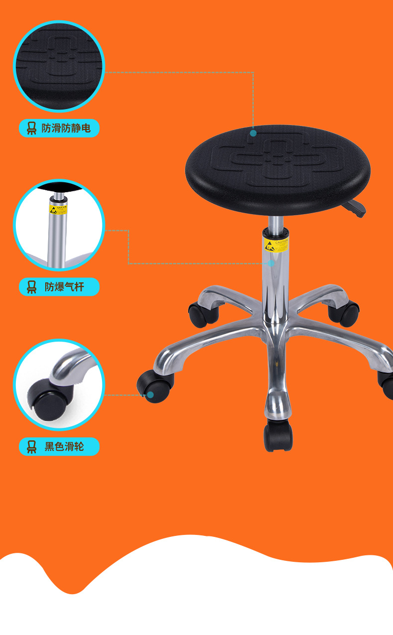Прямые поставки с фабрики антистатический стул из ПУ пены, китайский узел, подъемный круглый стул для сборочной линии, лабораторный электростатический стул