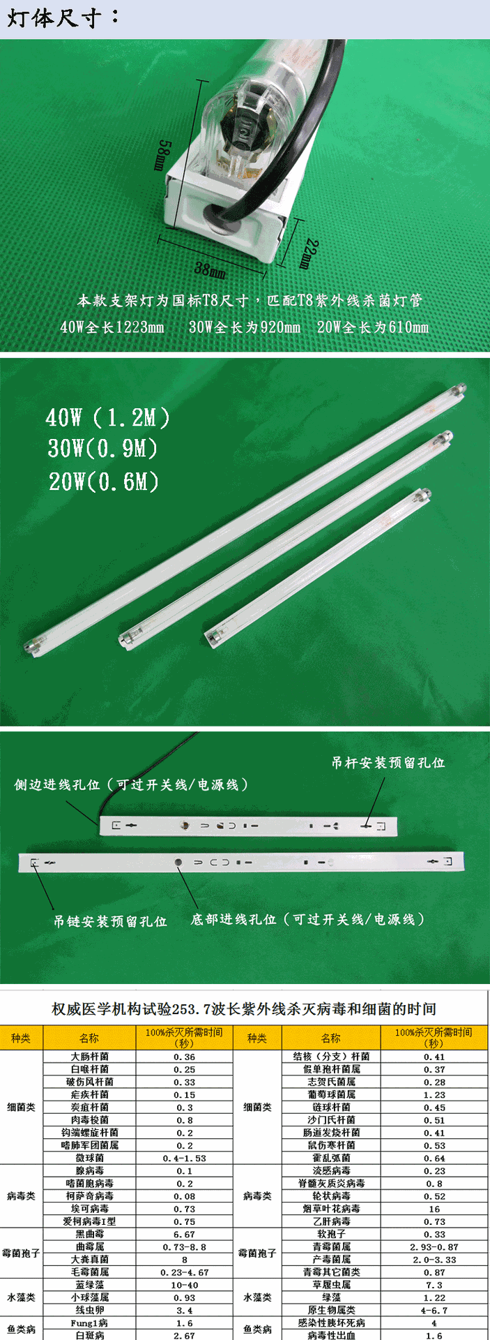 ![]() | 1.2m 40w t8 disinfection lamp + electronic bracket | ¥25.0 / ≈ 302 ₽ | 4452 | 5663107664434 | |