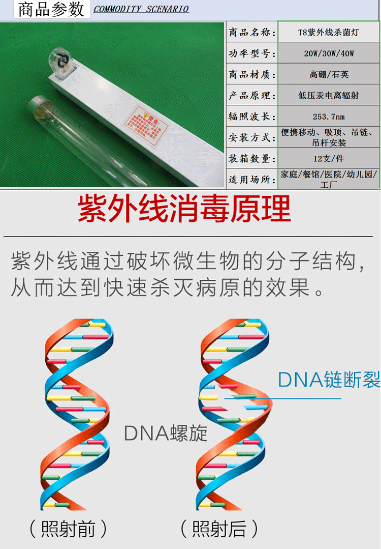 Ультрафиолетовая лампа для дезинфекции T8, УФ-лампа для уничтожения микробов, для школ и детских садов, медицинская дезинфекционная лампа