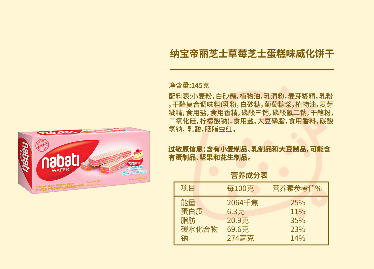импортное сырье nabaodi сыр клубничный шоколадный вкус вафельные печенья 145г закуски