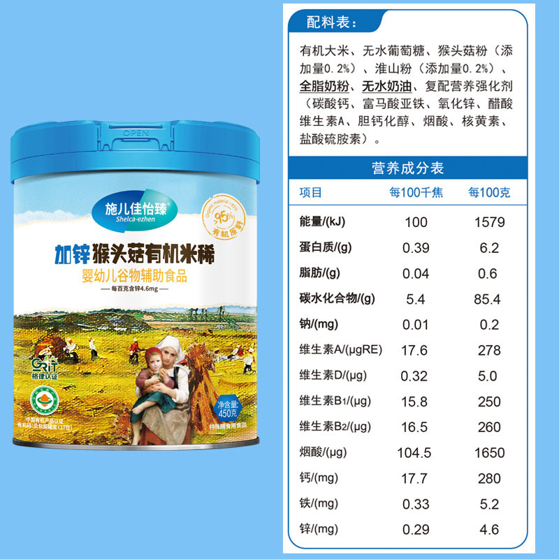 Сырьё и ингредиенты Organic rice, anhydrous glucose, calcium, iron, zinc, vitamins, etc.