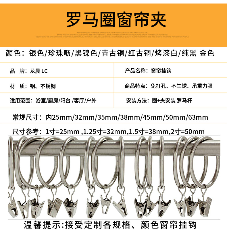 Горячий кросс-бодрящий черный электрофорезный железный кольцо для штор Электрофорезный зажим для штор Электрофорезный черный зажим для душа