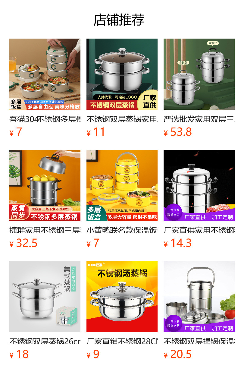 📦 | 304 three-layer steamer (all steel handle/dome beads/combination cover) | 28cm | ¥130.0 / ≈ 1 566 ₽ | 4338 | 6066805283257 | |