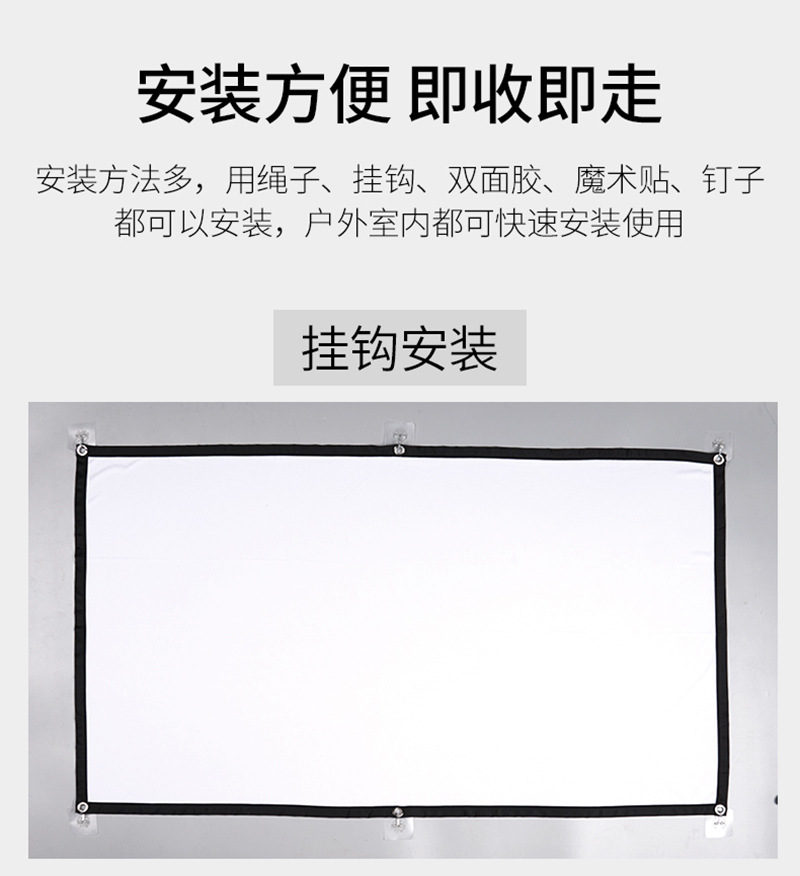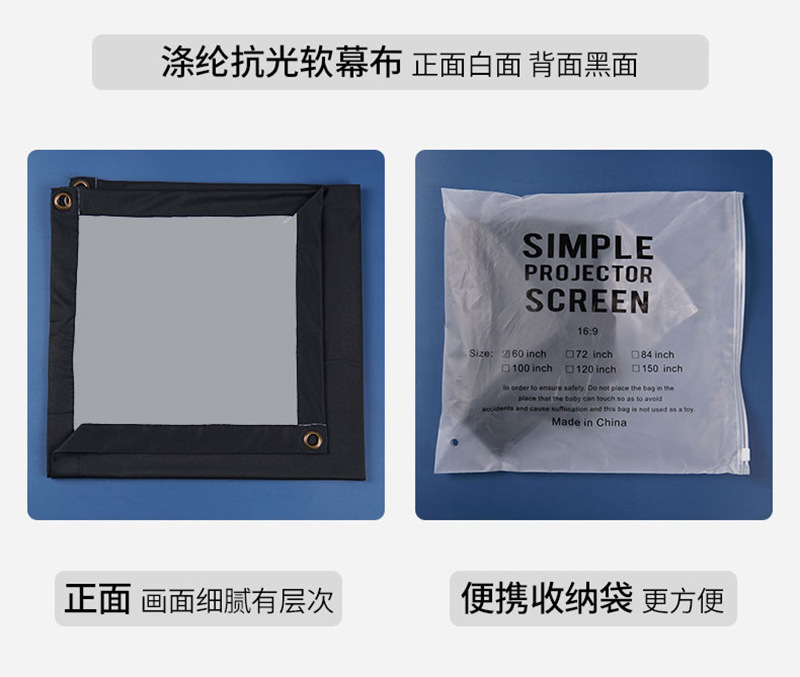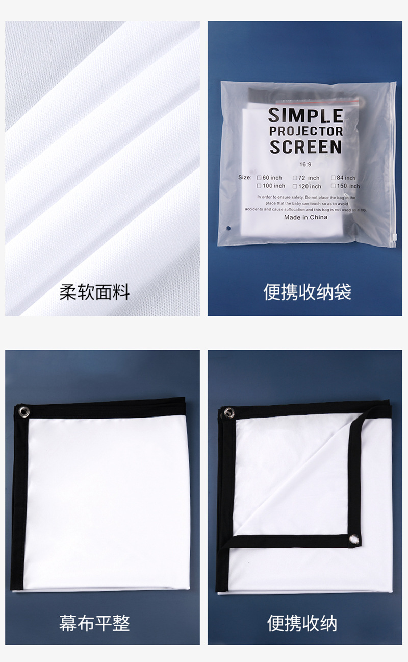 Портативный складной полиэстеровый антивспышечный простой мягкий занавес 100 дюймов 120 дюймов с крючком для проекции