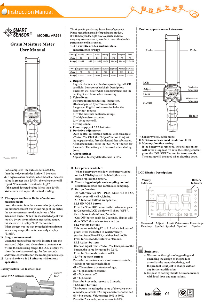 Код продавца Moisture meter ar991