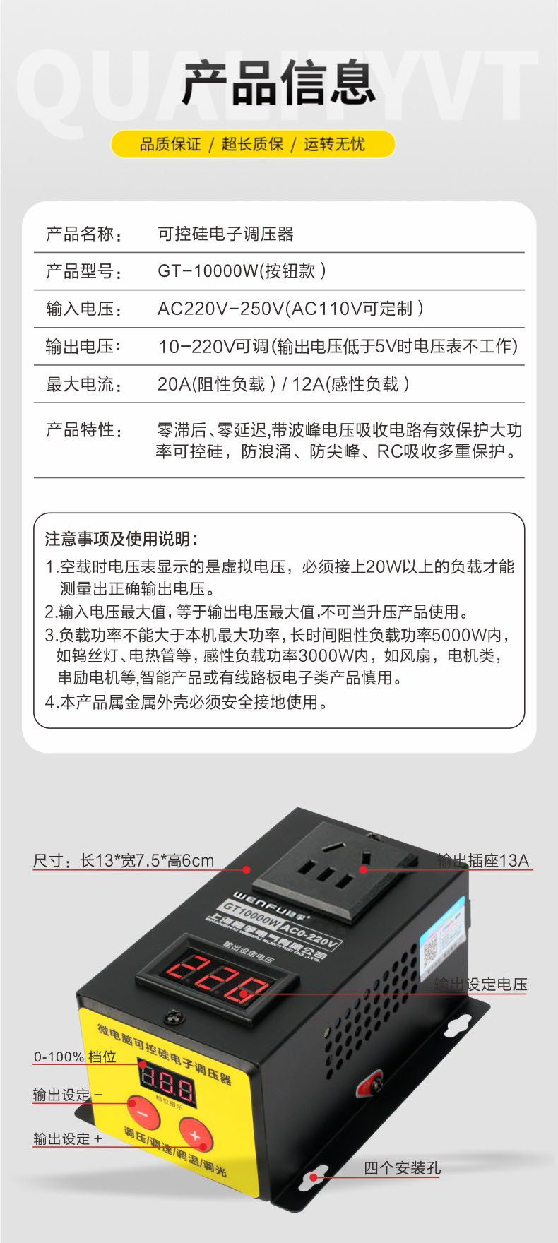 Электронный регулятор напряжения 10000W, тиристорный, для моторов, дрелей, переменная скорость, термостат 220V