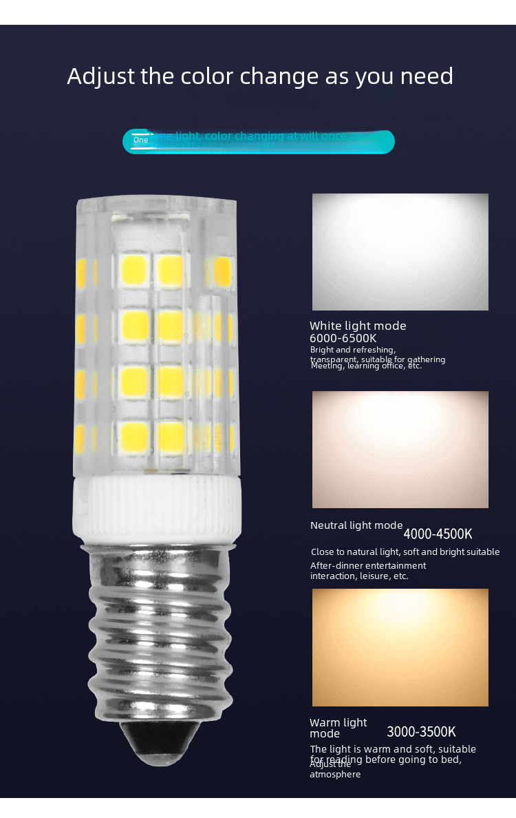 светодиодная лампа для холодильника E14, лампочка для швейной машины, три цвета диммирования