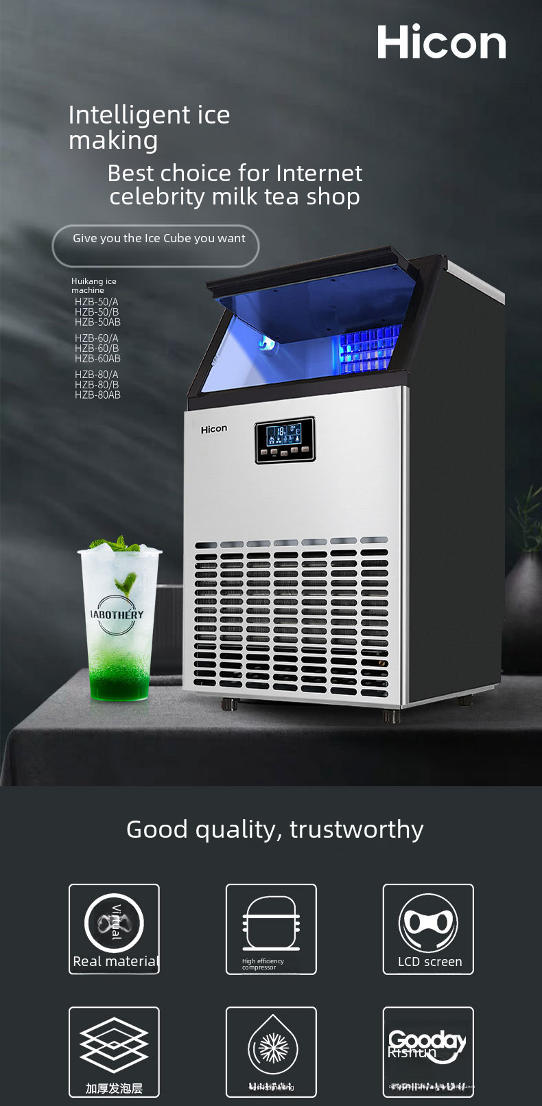 - High Capacity Ice Maker:This HuiKang commercial ice maker has a maximum output of 55KG per day, perfect for large businesses like milk tea shops and bars that require constant ice supply.