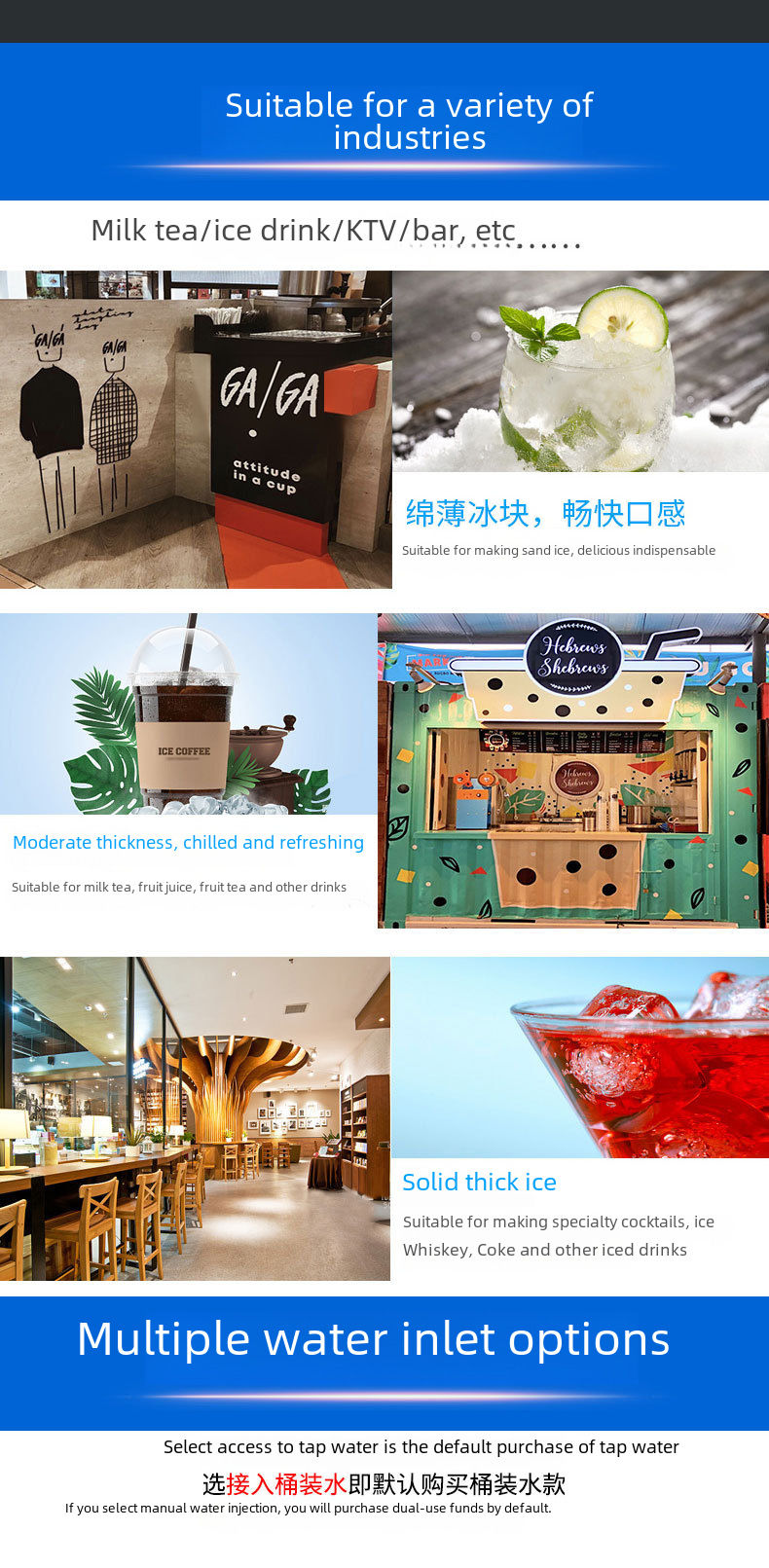 - Versatile Usage:Whether it's for a milk tea shop, bar, or any other commercial space that requires large quantities of ice, this ice maker is a versatile choice for all your icing needs.